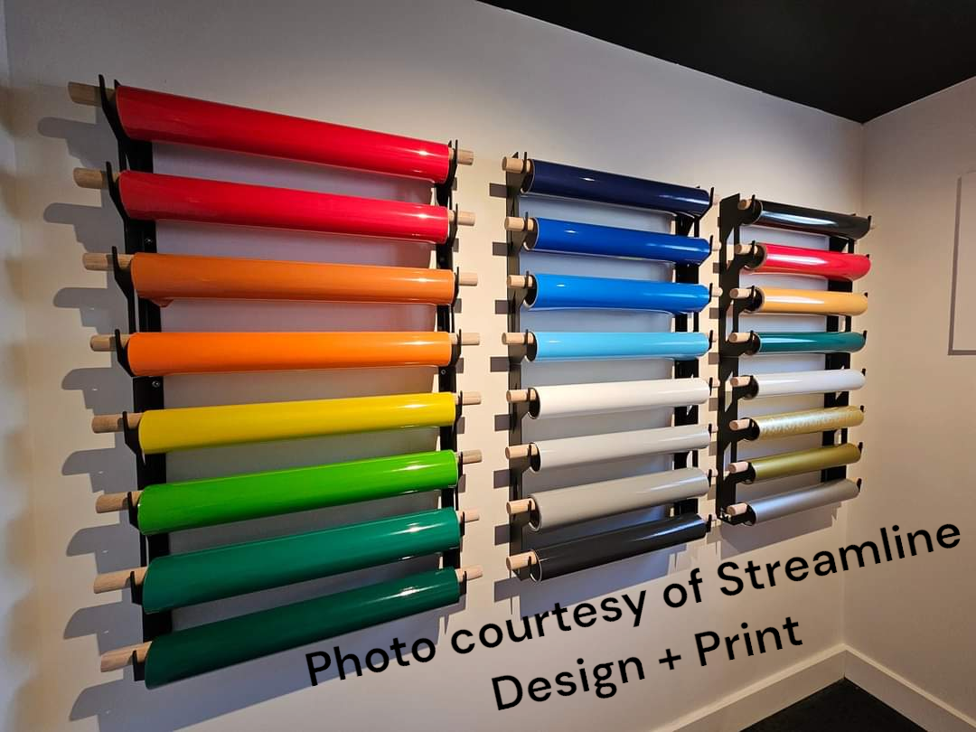 Wall-Mounted Vinyl, Tint, Paper & Cloth Wrap Rack - Modular Storage | Martin Metalwork"
