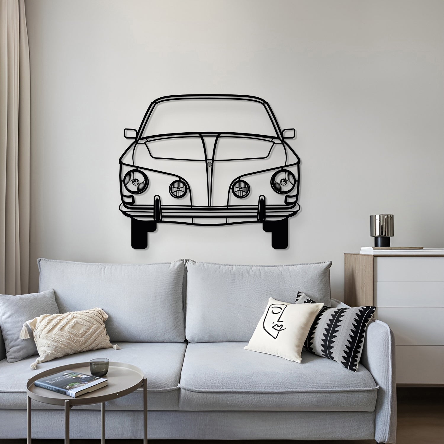 This 1965 Karmann Ghia Front View Metal Car Wall Art will turn any car enthusiast's home. garage. hallway. living room. bedroom. or office into a unique space. add a stylistic look and captivate petrolheads as well as visitors.