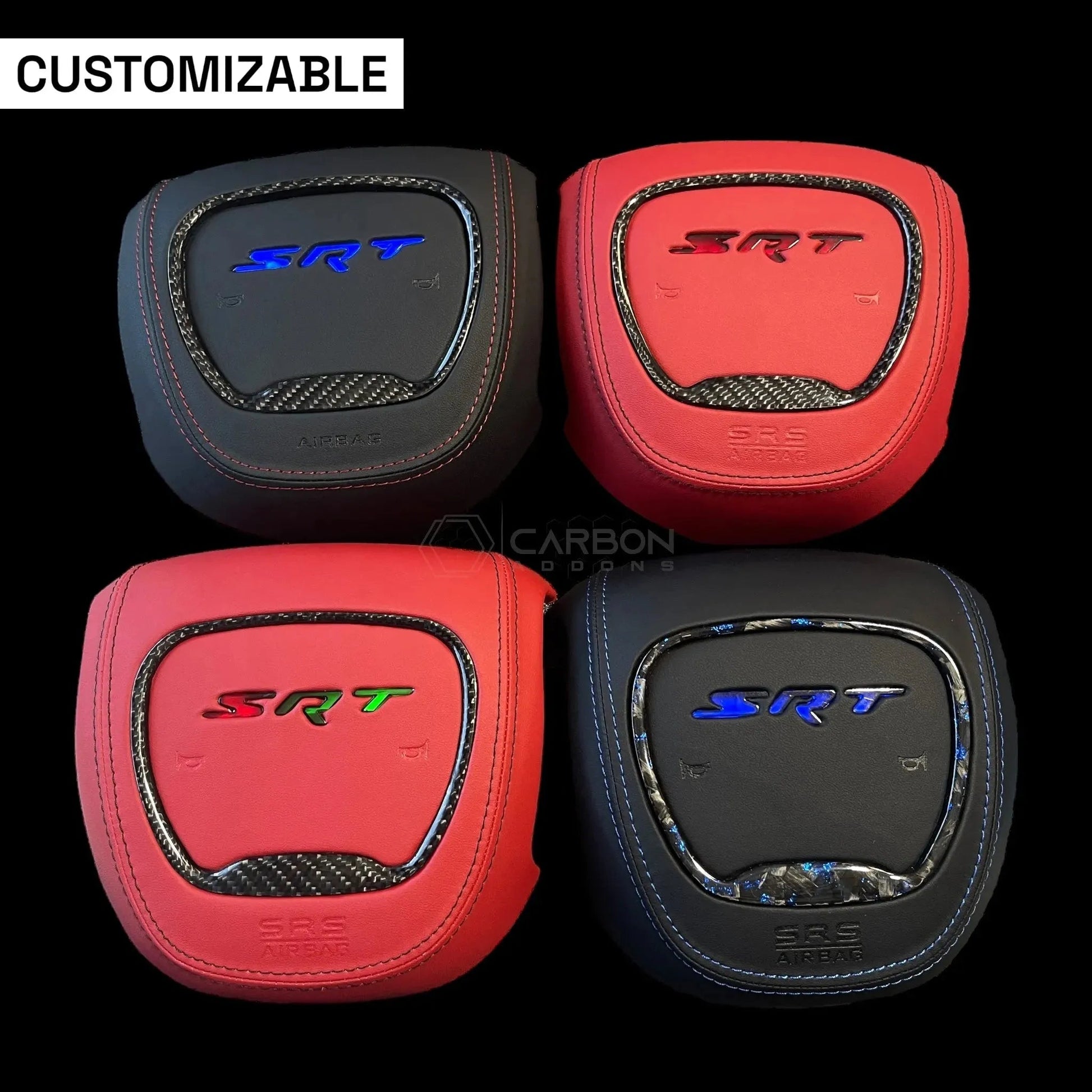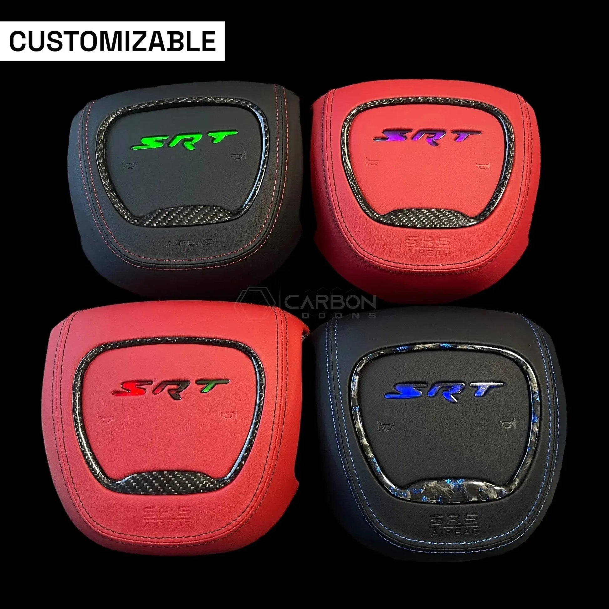 Enhance your stock or custom steering wheel with a custom airbag cover featuring an RGB LED SRT emblem. This cover is fully customizable and designed specifically for Dodge SRT Charger, Challenger, and Durango models.