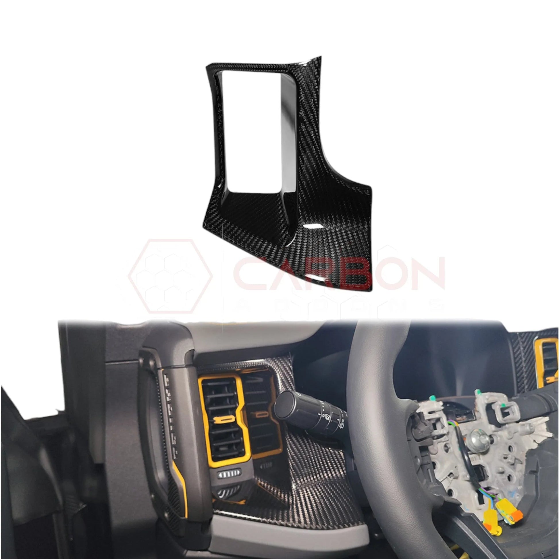 Upgrade your Bronco’s interior effortlessly with our premium real carbon fiber stick-on trim, designed specifically for models from 2021 to 2024. This stylish modification is crafted to install directly over your existing interior trim, transforming your cabin without the need for professional help.