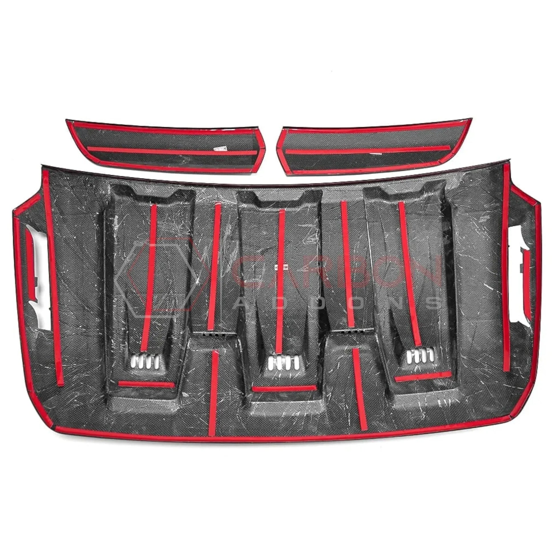 Made from real autoclave-cured dry carbon fiber, it’s built to endure extreme heat while staying lightweight and structurally strong. The high-gloss UV-protected finish resists fading and keeps your hood looking sharp in any condition.
