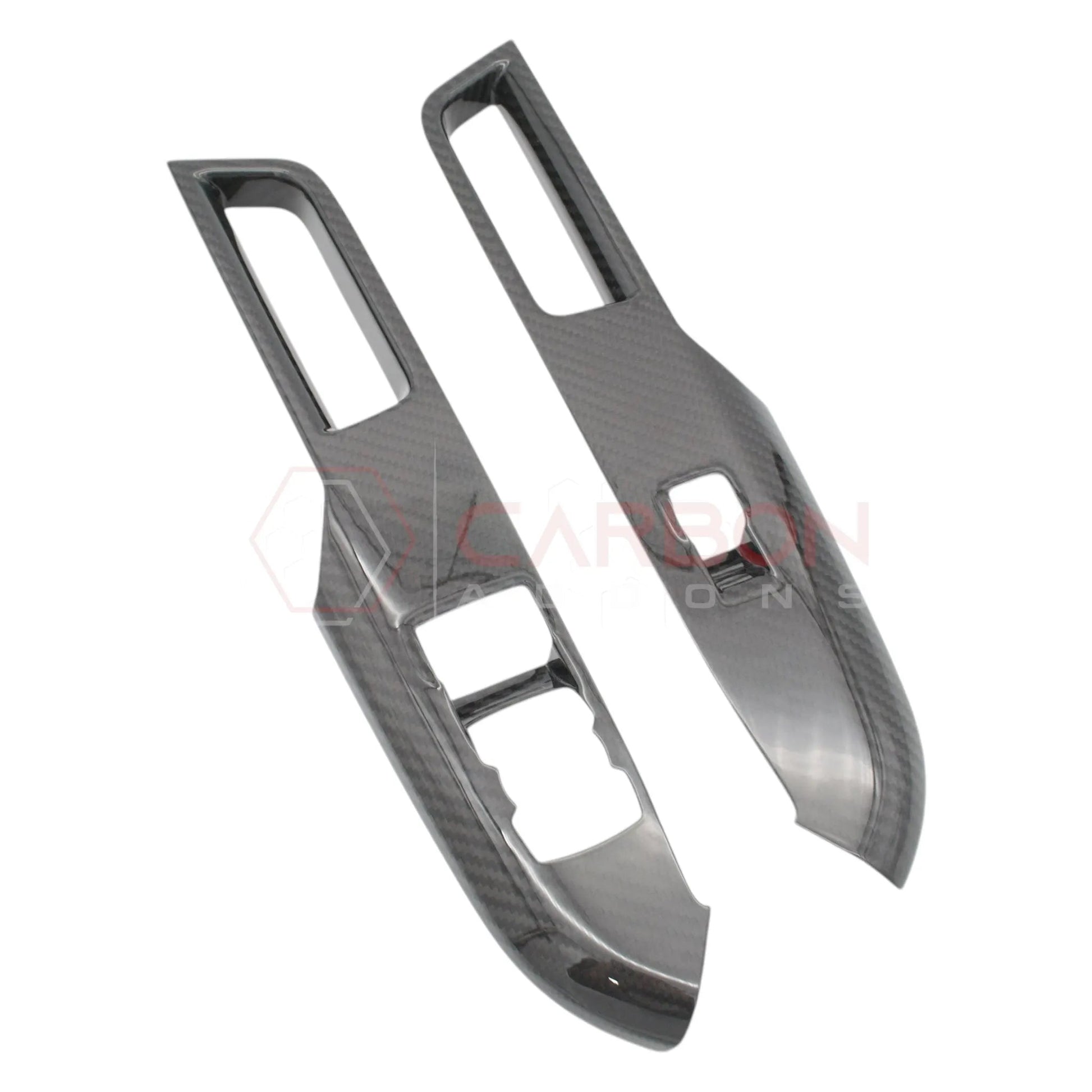 2pcs Window Switch Trim Hard Carbon Fiber Cover