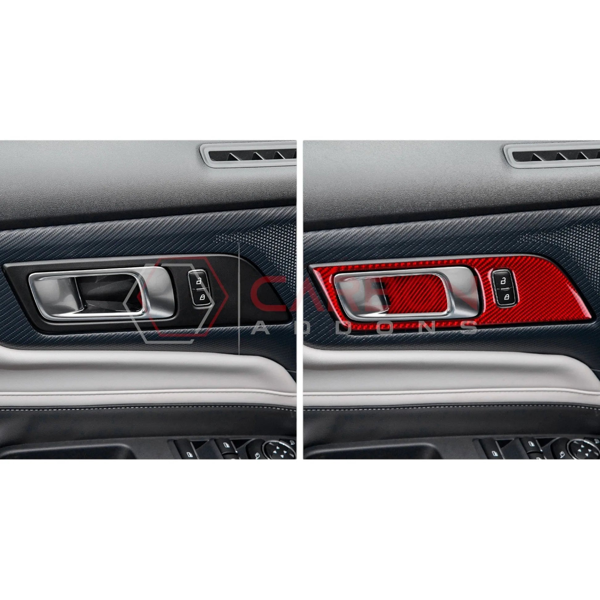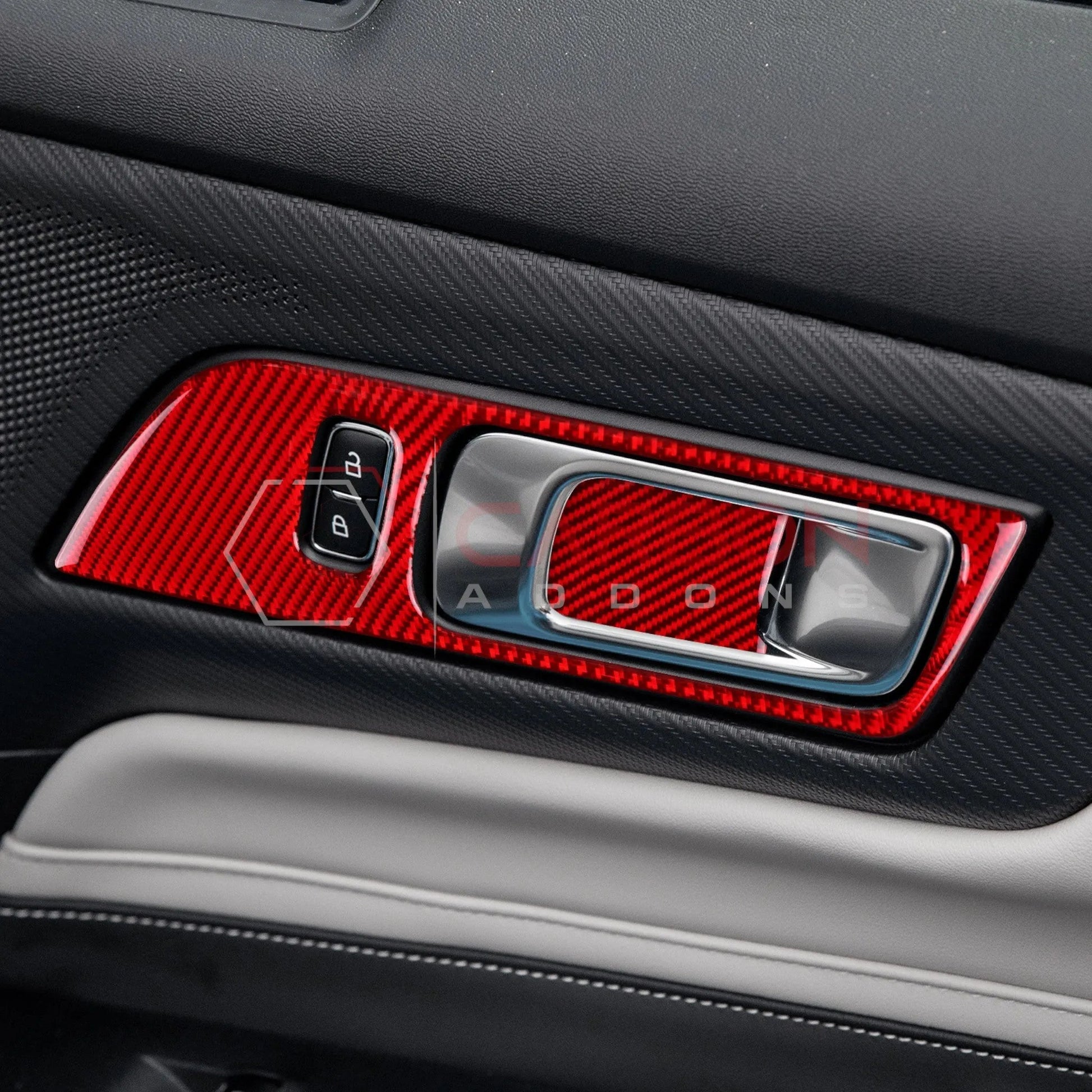 This item is made with real carbon fiber and is designed to upgrade the look of your Mustang's interior. It is not a replacement part, this is a soft and flexible carbon fiber overlay that goes directly on top of your Door Handle Trim which means it can be installed within minutes without professional installer required.