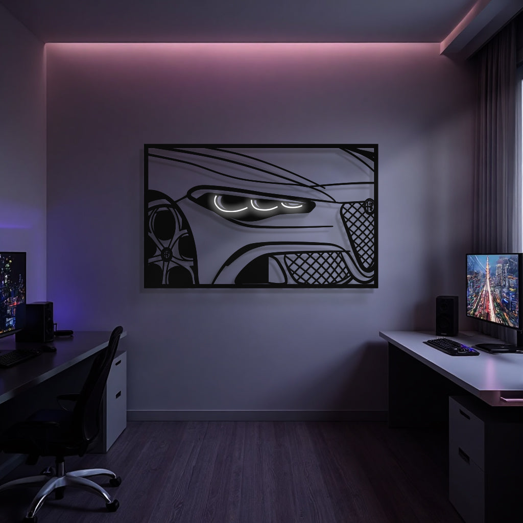 This 2025 Quadrifoglio Apex Front View Metal Neon Frame Wall Art will turn any car enthusiast's home, garage, hallway, living room, bedroom, or office into a unique space, add a stylistic look and captivate petrolheads as well as visitors.