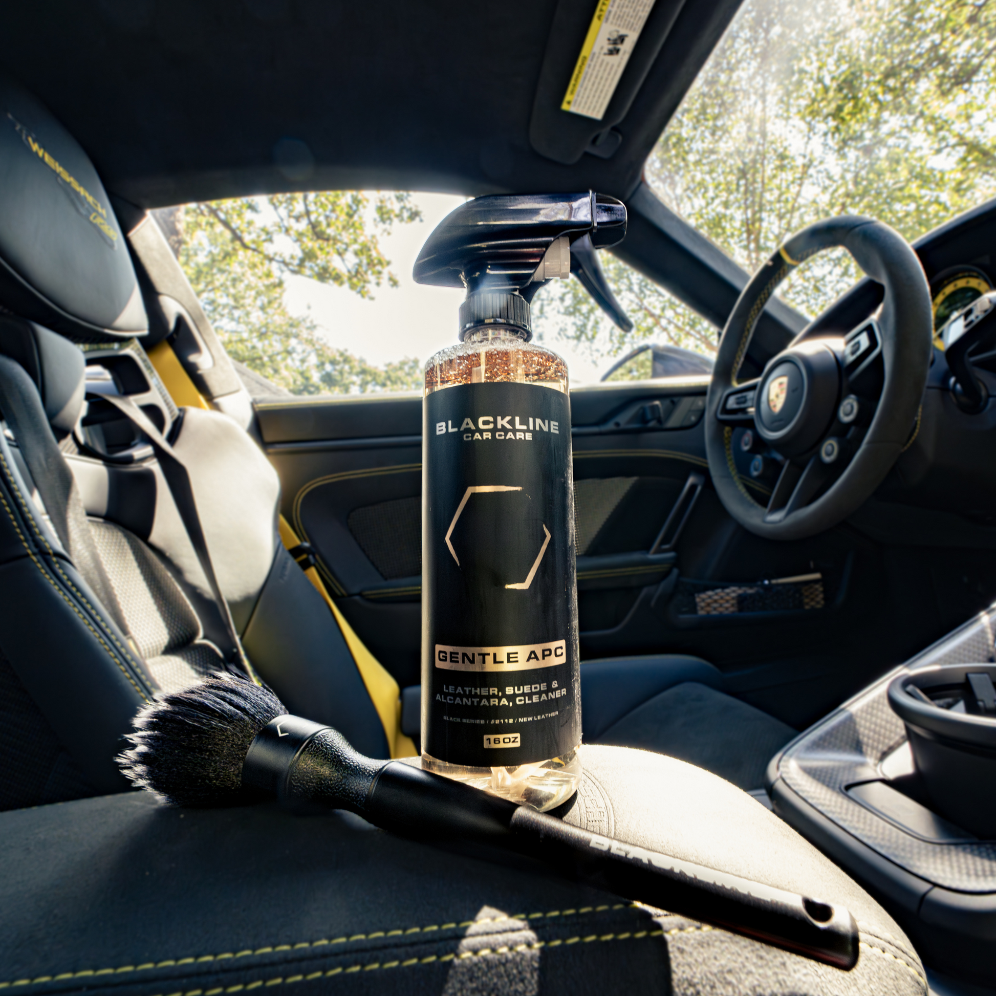 Our Gentle All-Purpose Cleaner is a versatile solution specifically designed for use on delicate materials such as Leather, Suede, and Alcantara. With its specialized formula, it offers a safe and effective cleaning experience, preserving the beauty and integrity of these sensitive surfaces.