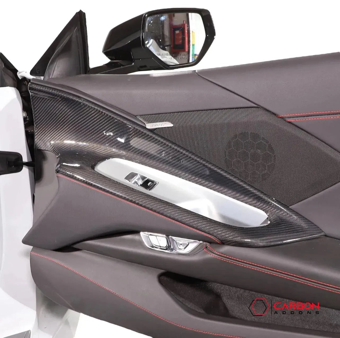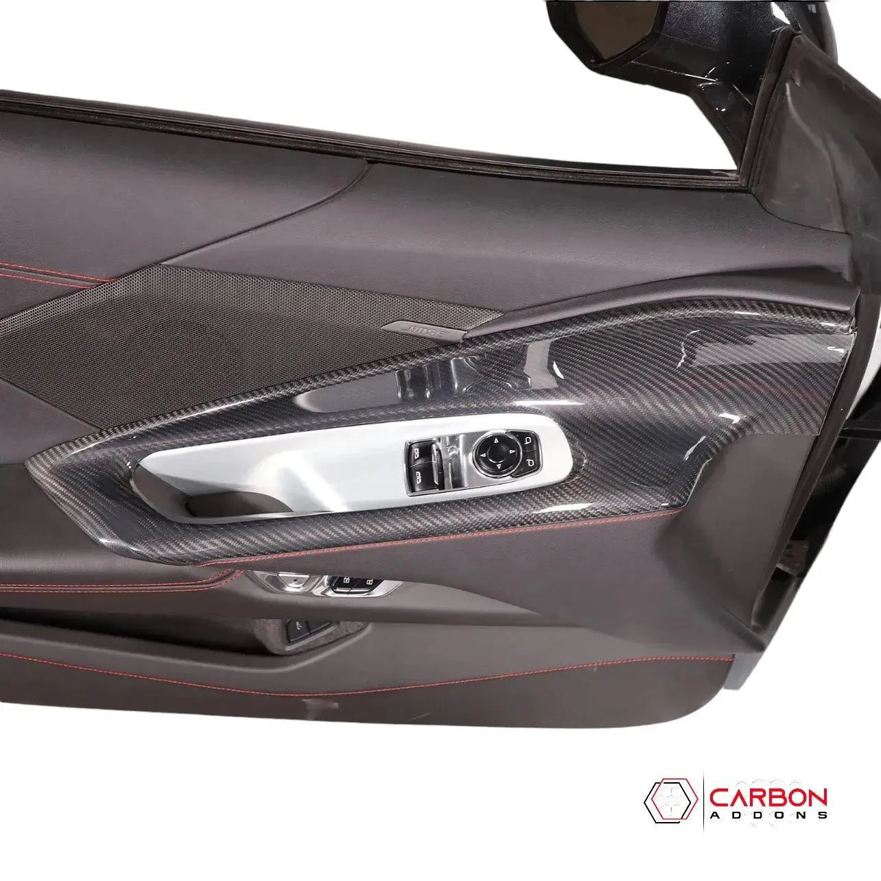 Modern engineering calls for modern design. Upgrade the look of the interior of your C8 Corvette's door panel with this real carbon fiber window switch outer trim panel frame cover.
