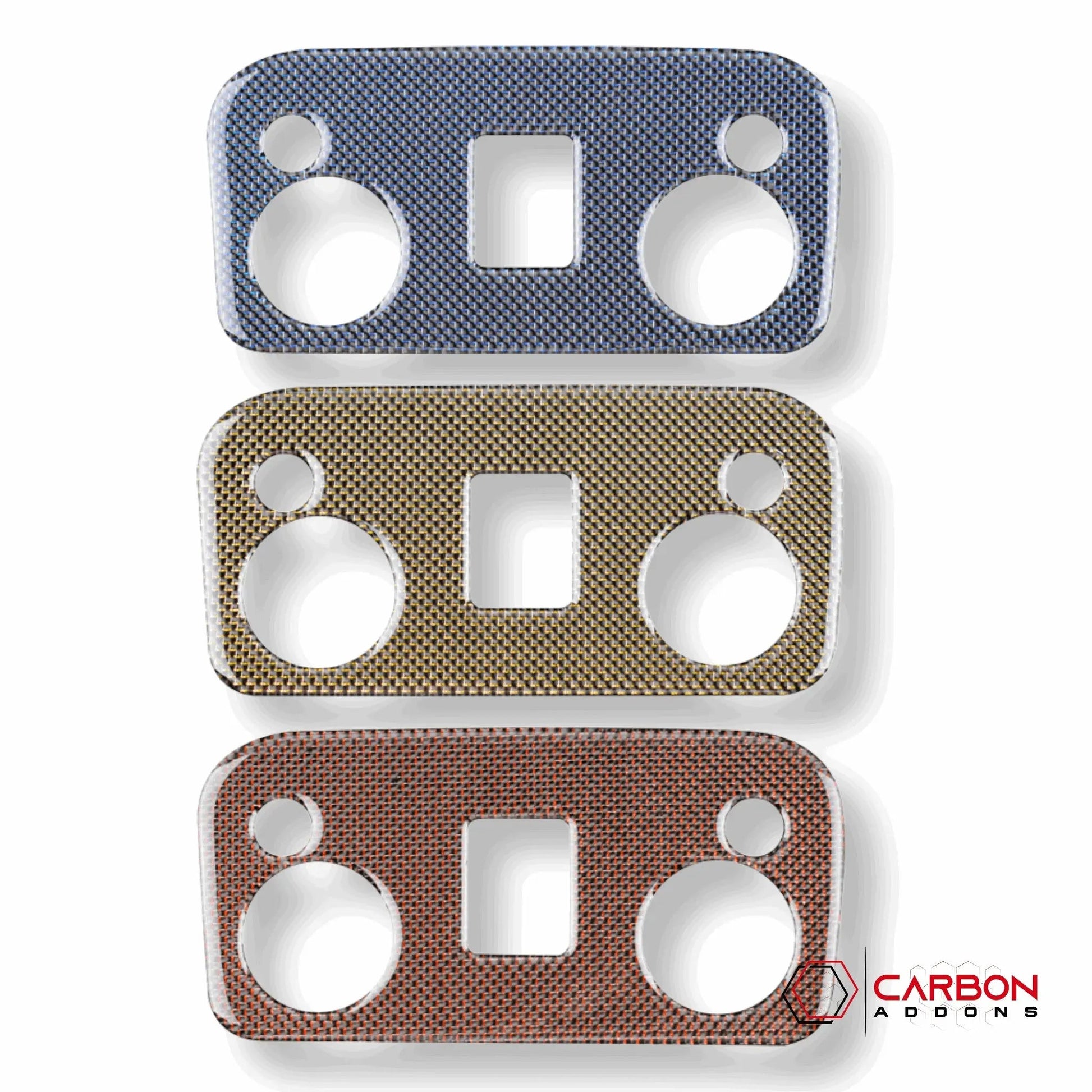 This carbon fiber interior Dome Light Trim Overlay is made using real carbon fiber woven in a 2x2 twill weave with an added metallic thread that reflects it's color for an added accent to the already beautiful carbon fiber strands. If you do not want the added metallic thread, you can find our standard carbon fiber version on another listing.