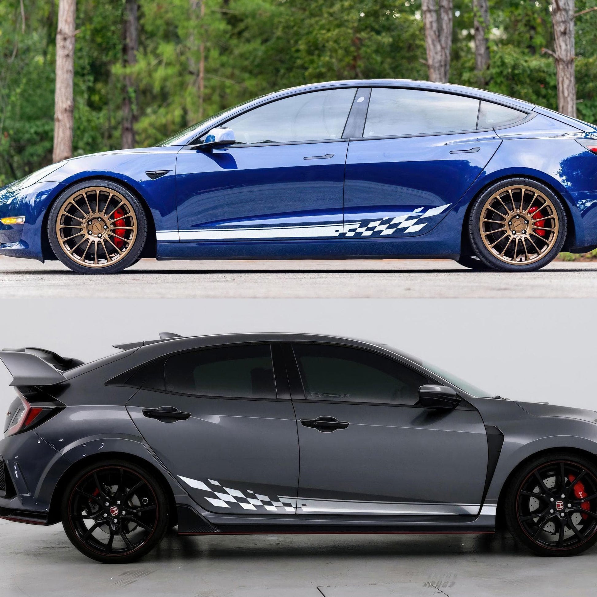Checker Flag Car Decal Sticker. Racing Stripes Graphic Sticker. #6999