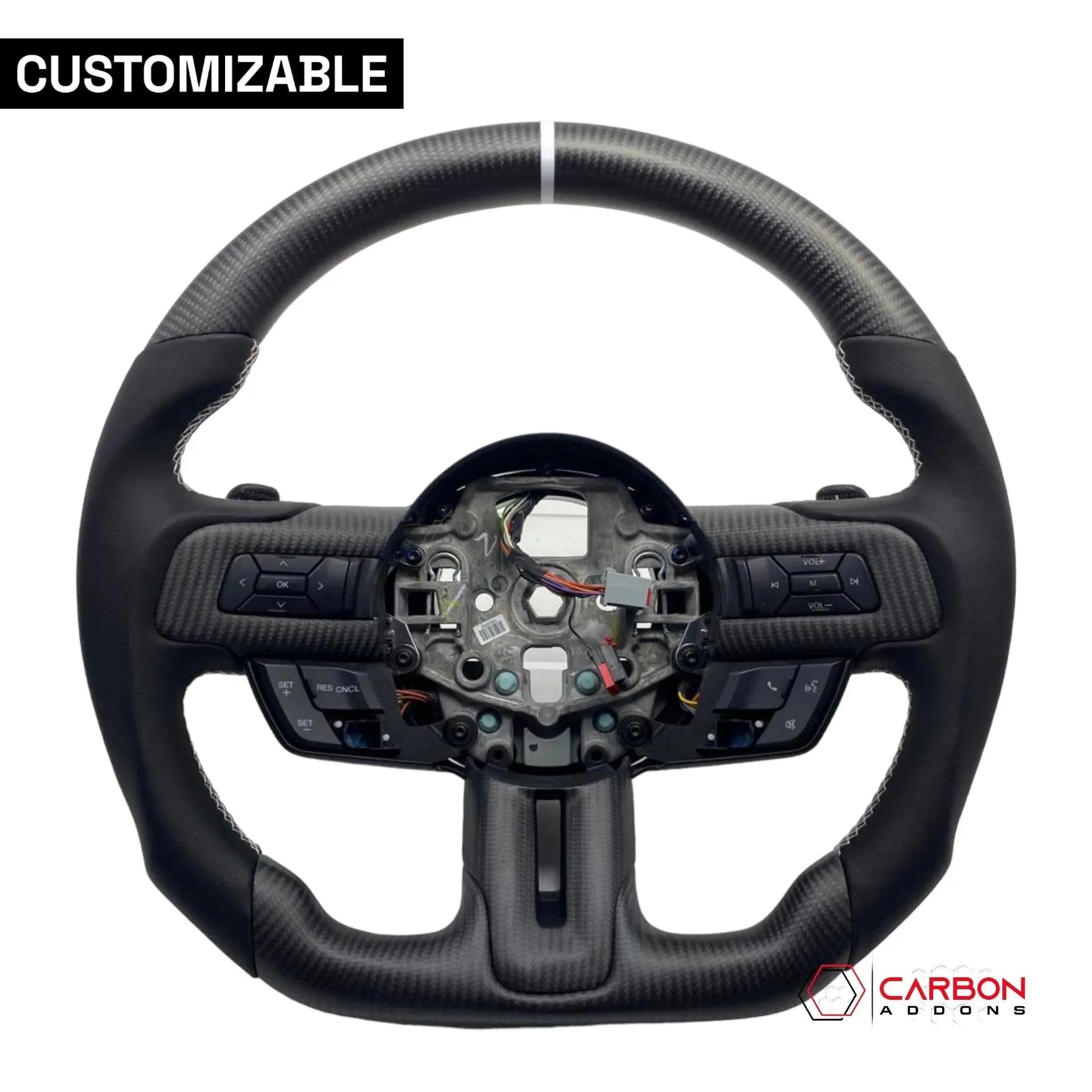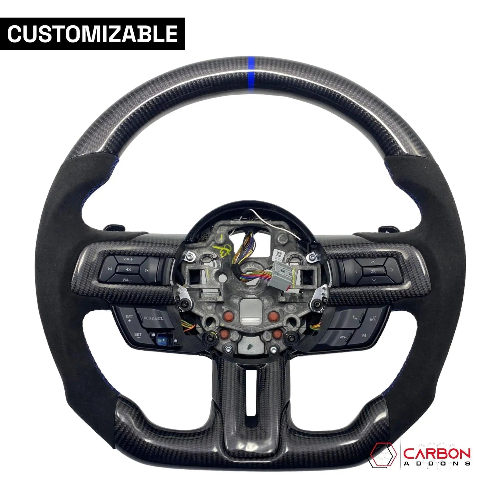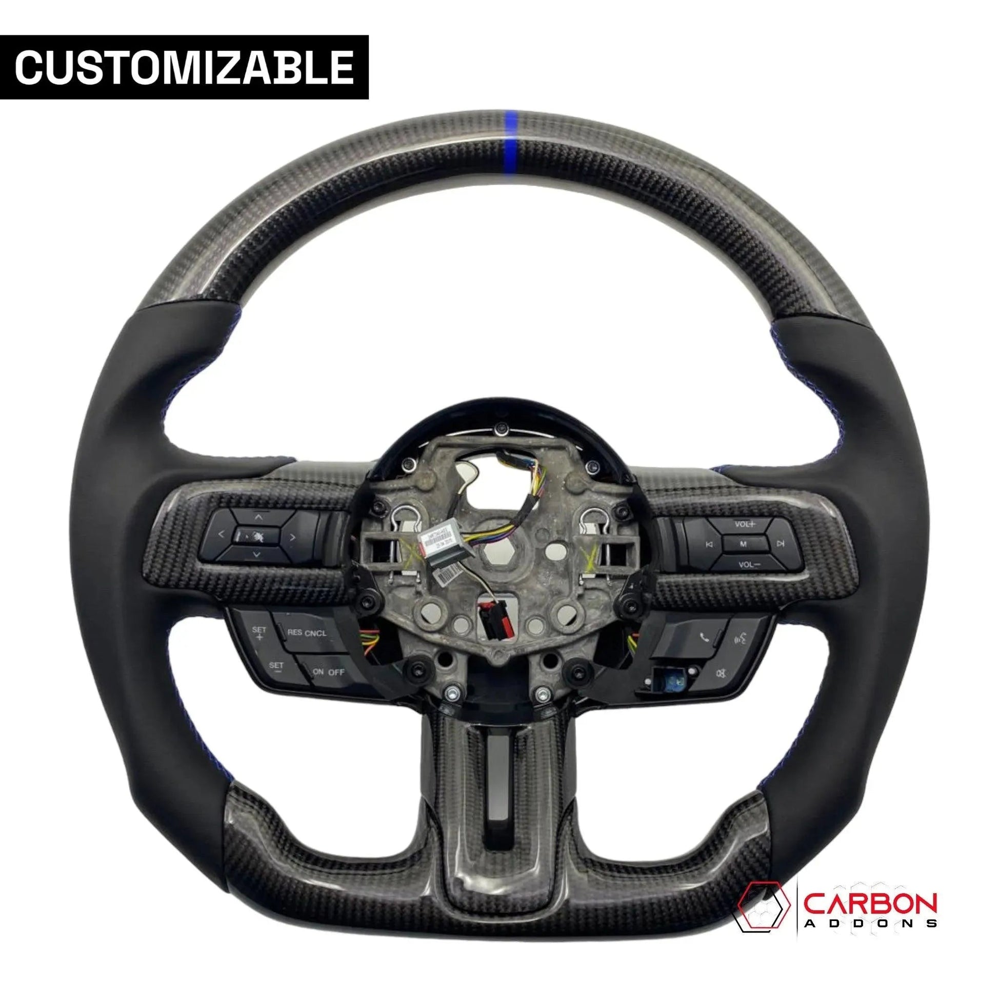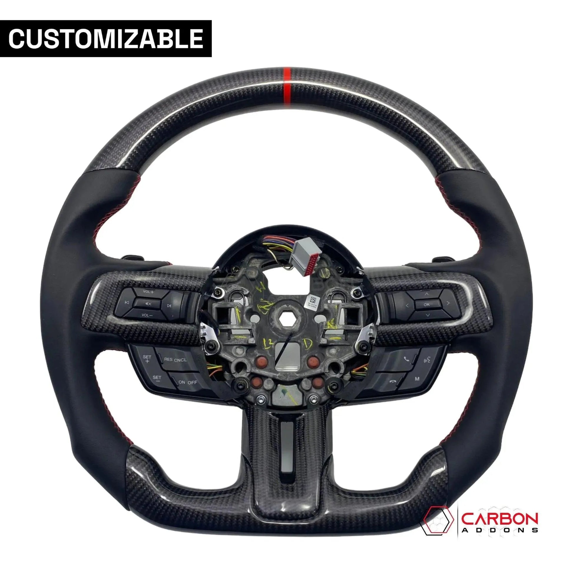 SET-OFF YOUR 2015-2023 MUSTANG INTERIOR WITH OUR FULLY CUSTOMIZABLE CARBON FIBER STEERING WHEEL!