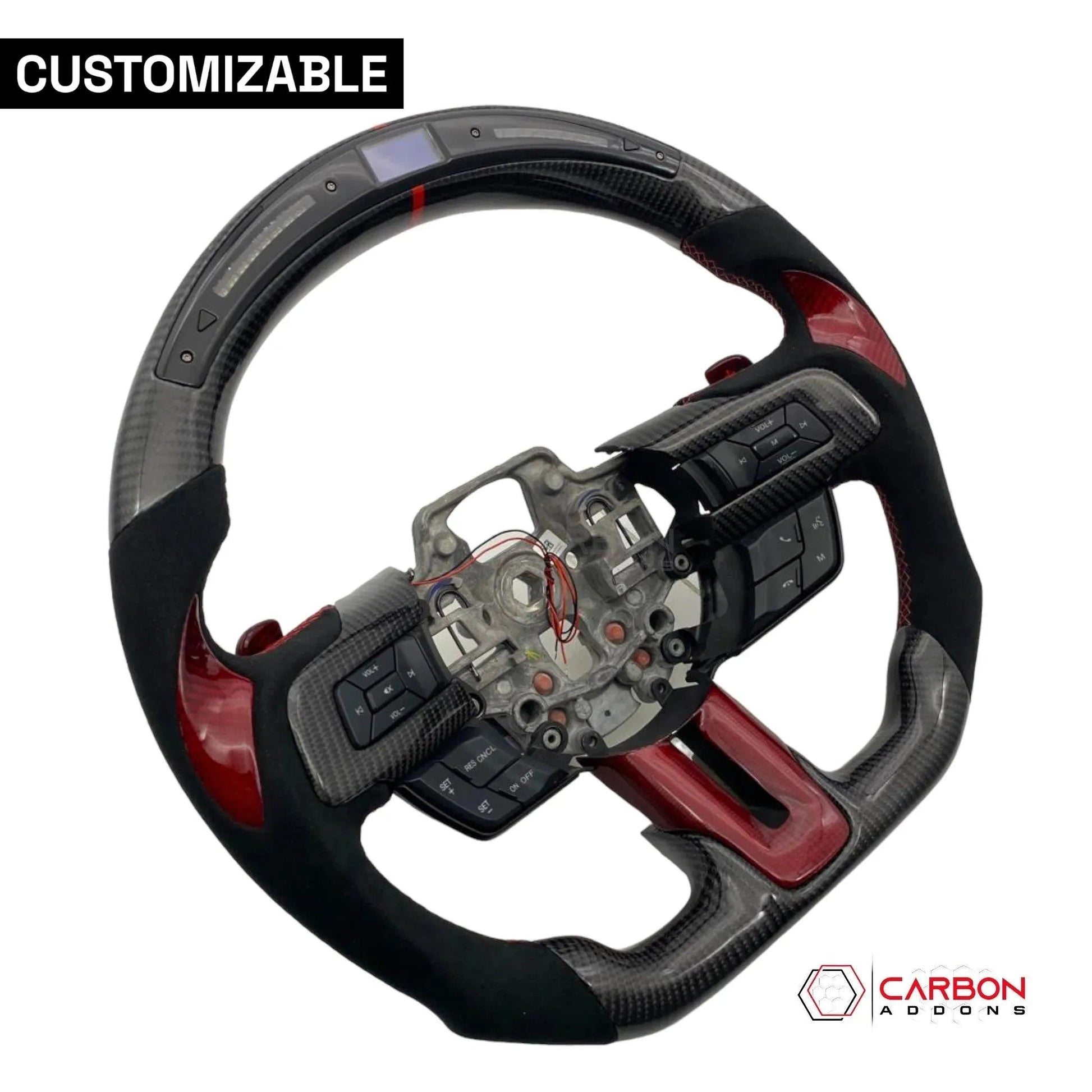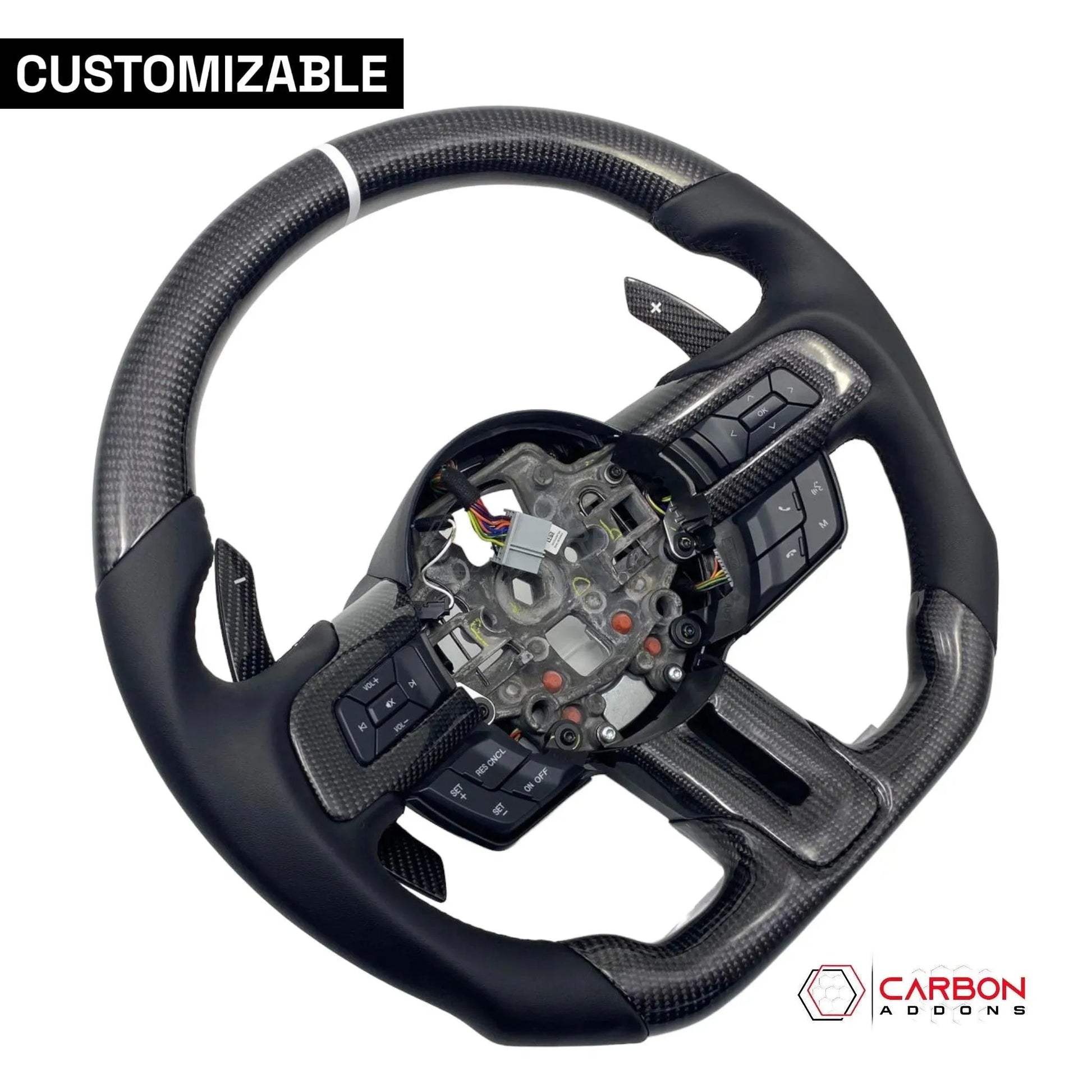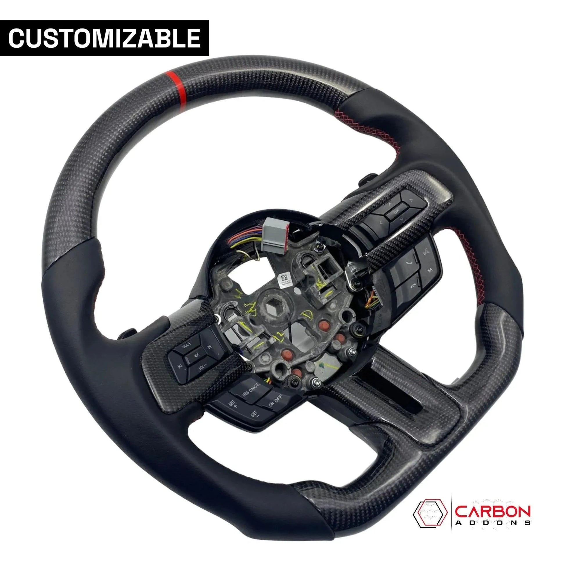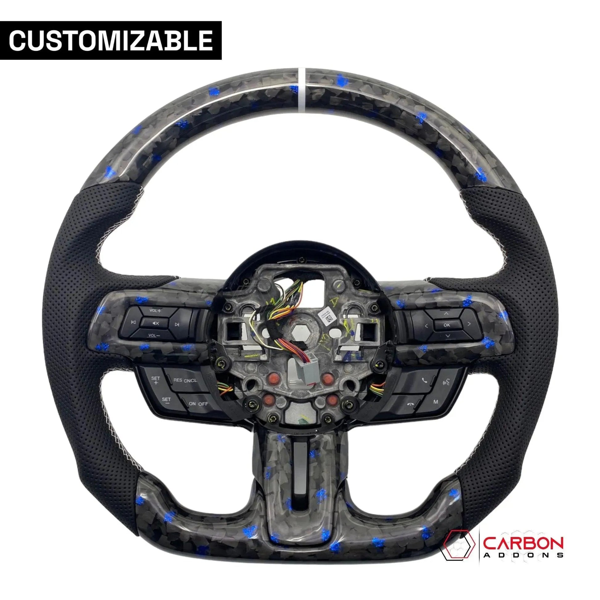 SET-OFF YOUR 2015-2023 MUSTANG INTERIOR WITH OUR FULLY CUSTOMIZABLE CARBON FIBER STEERING WHEEL!