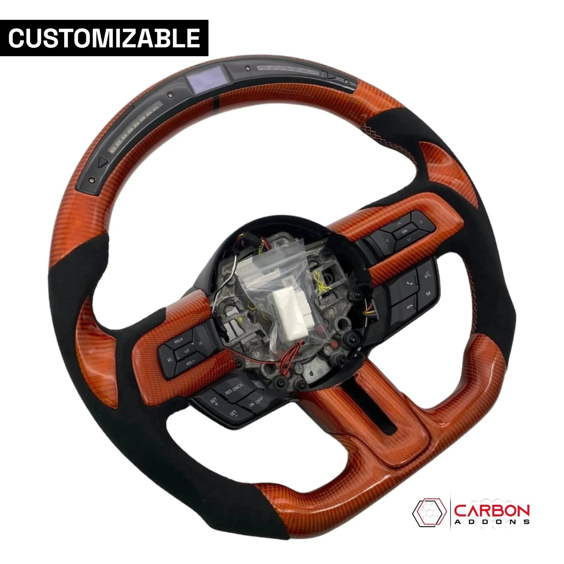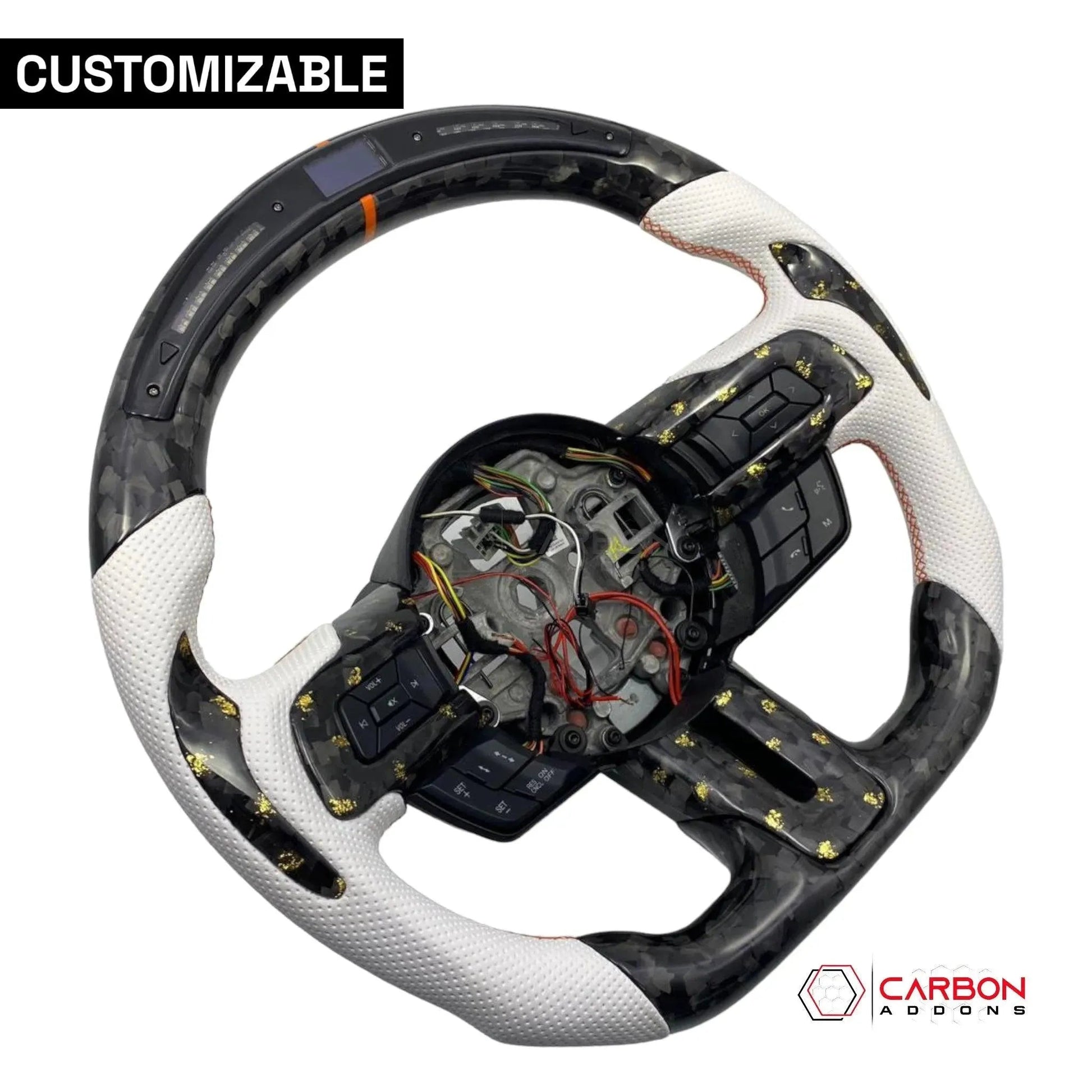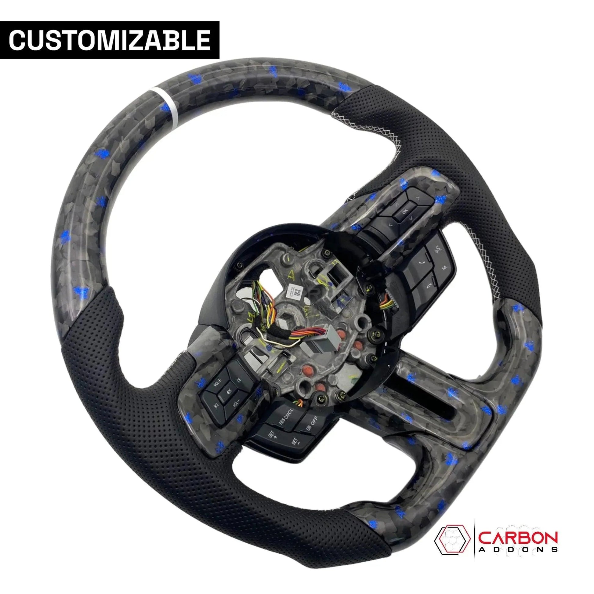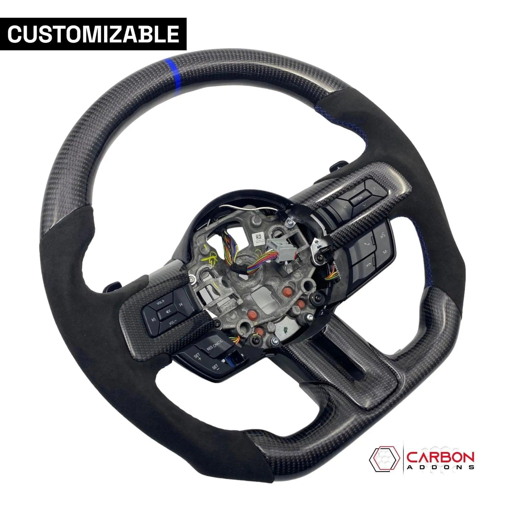 SET-OFF YOUR 2015-2023 MUSTANG INTERIOR WITH OUR FULLY CUSTOMIZABLE CARBON FIBER STEERING WHEEL!