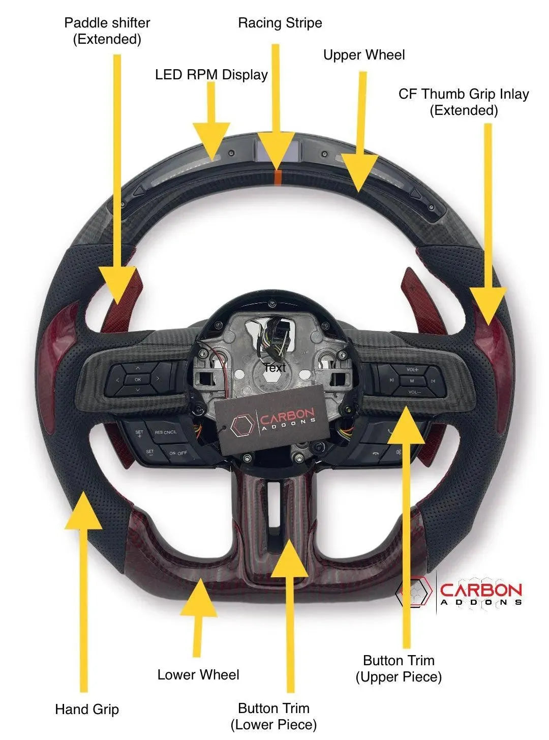 [Complete/Heated] Custom Carbon Fiber Steering Wheel for 2015-2023 Mustang
