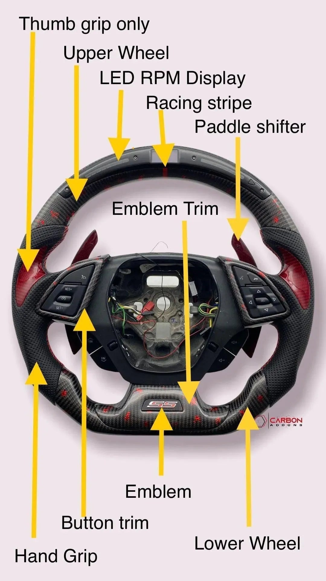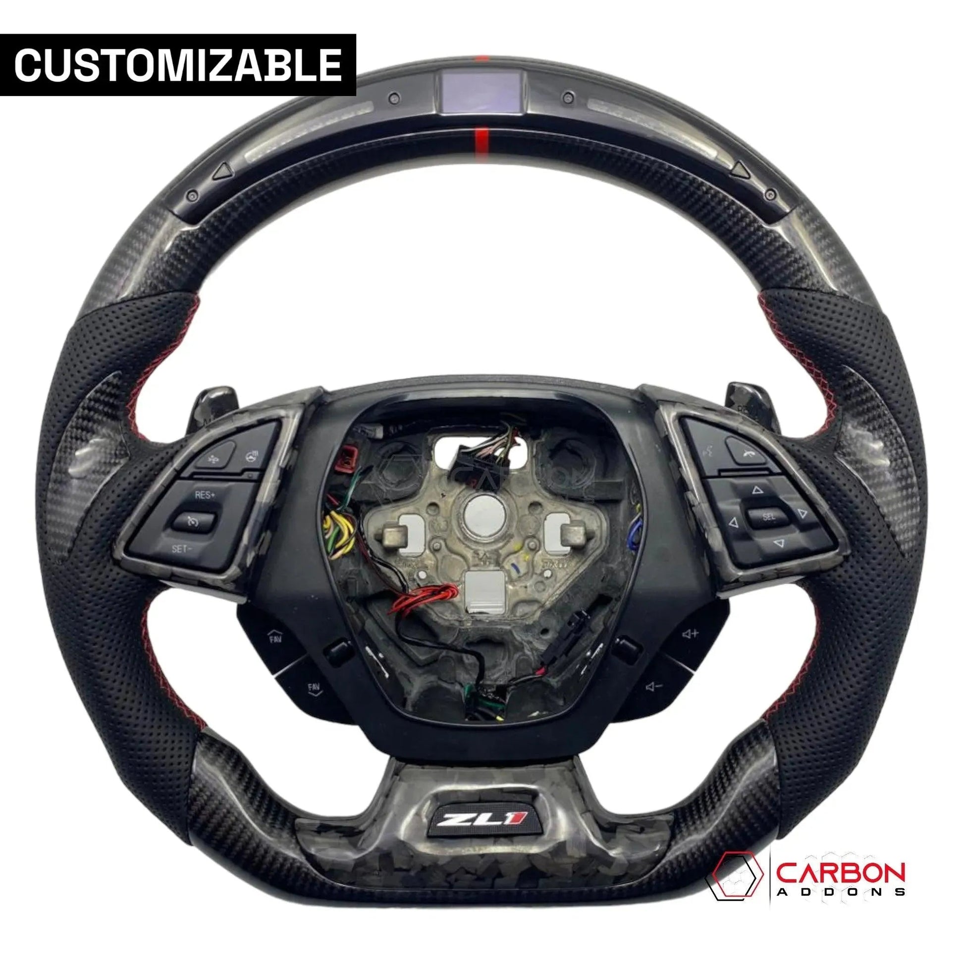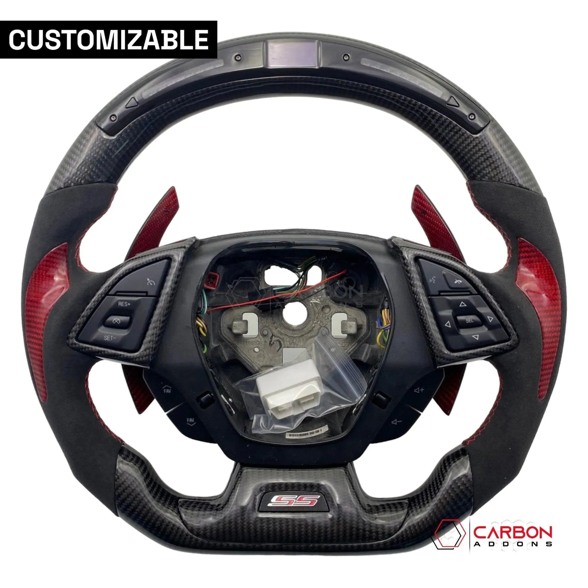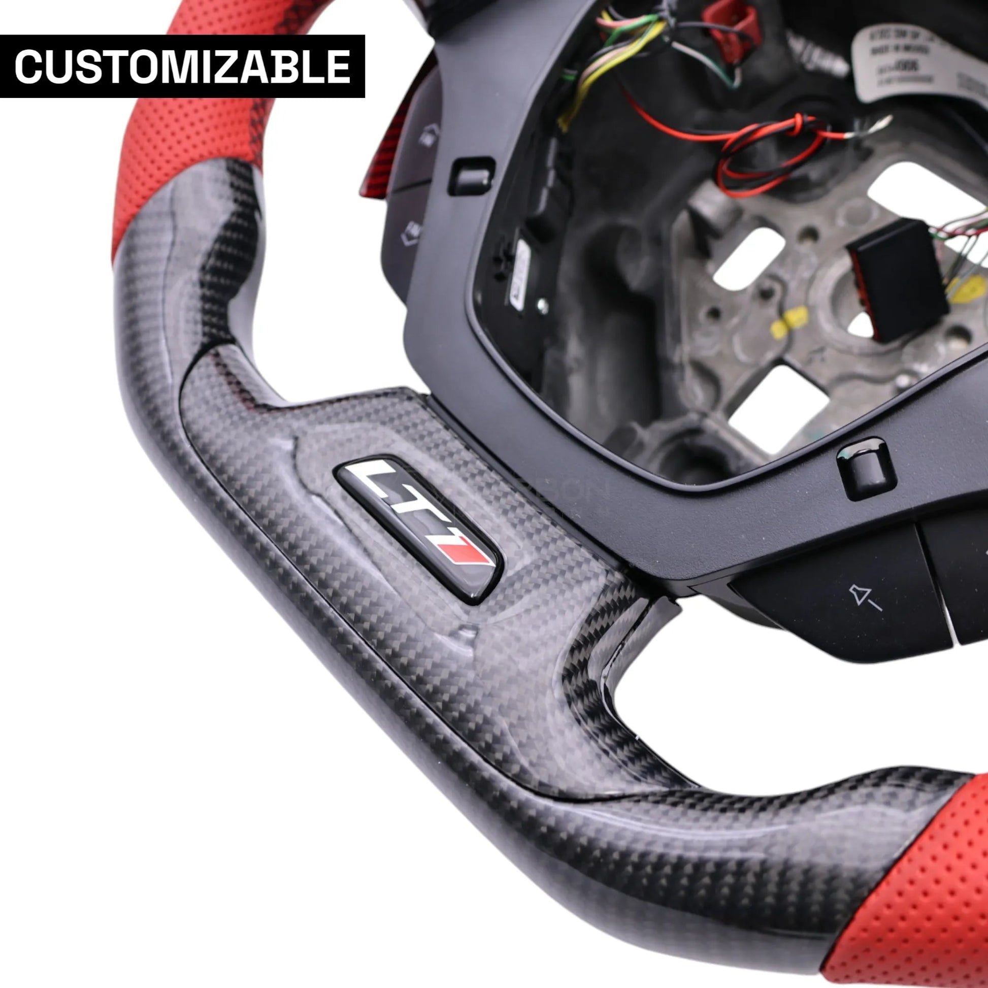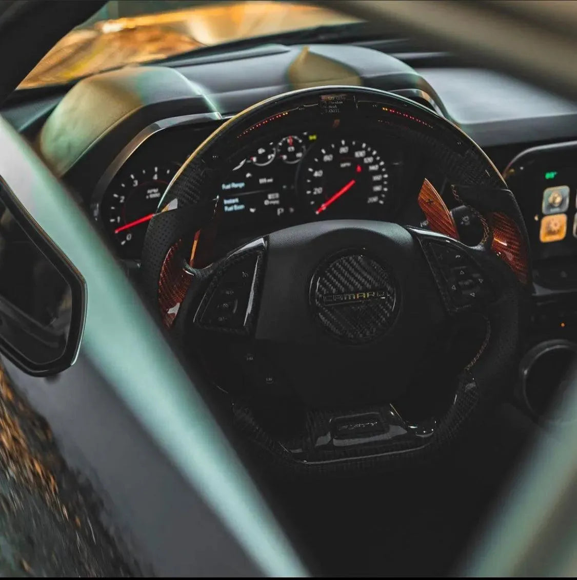 SET-OFF YOUR 2016-2023 6th GEN CAMARO'S INTERIOR WITH OUR FULLY CUSTOMIZABLE CARBON FIBER STEERING WHEEL!