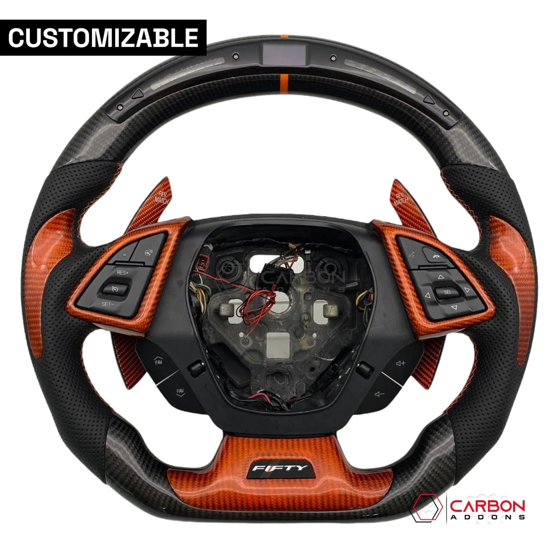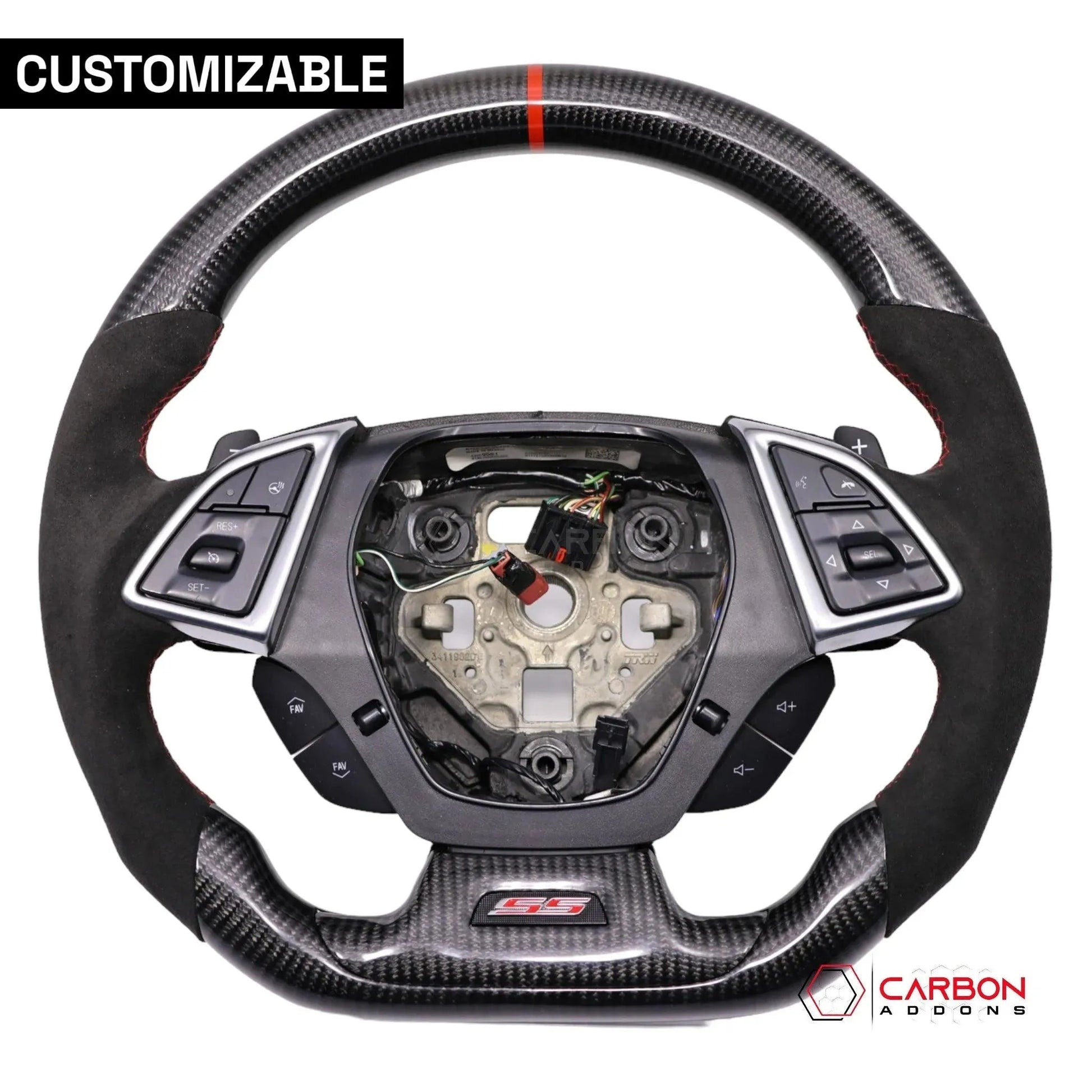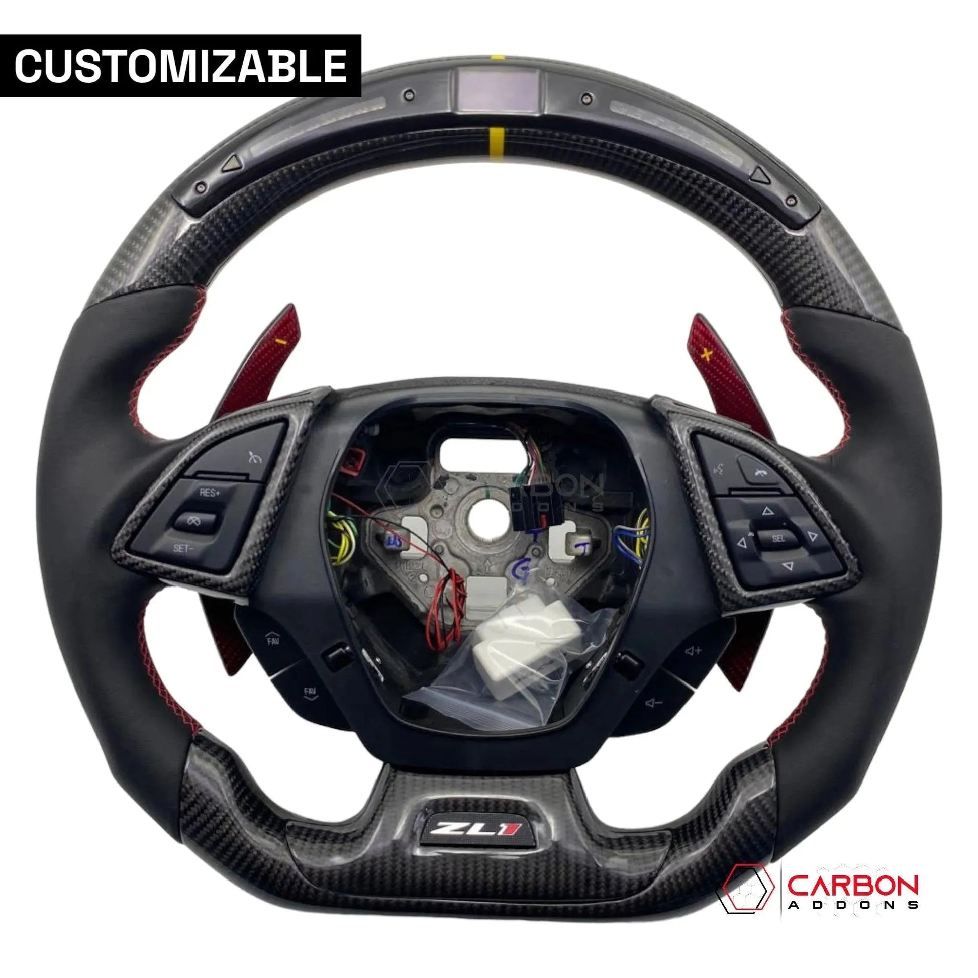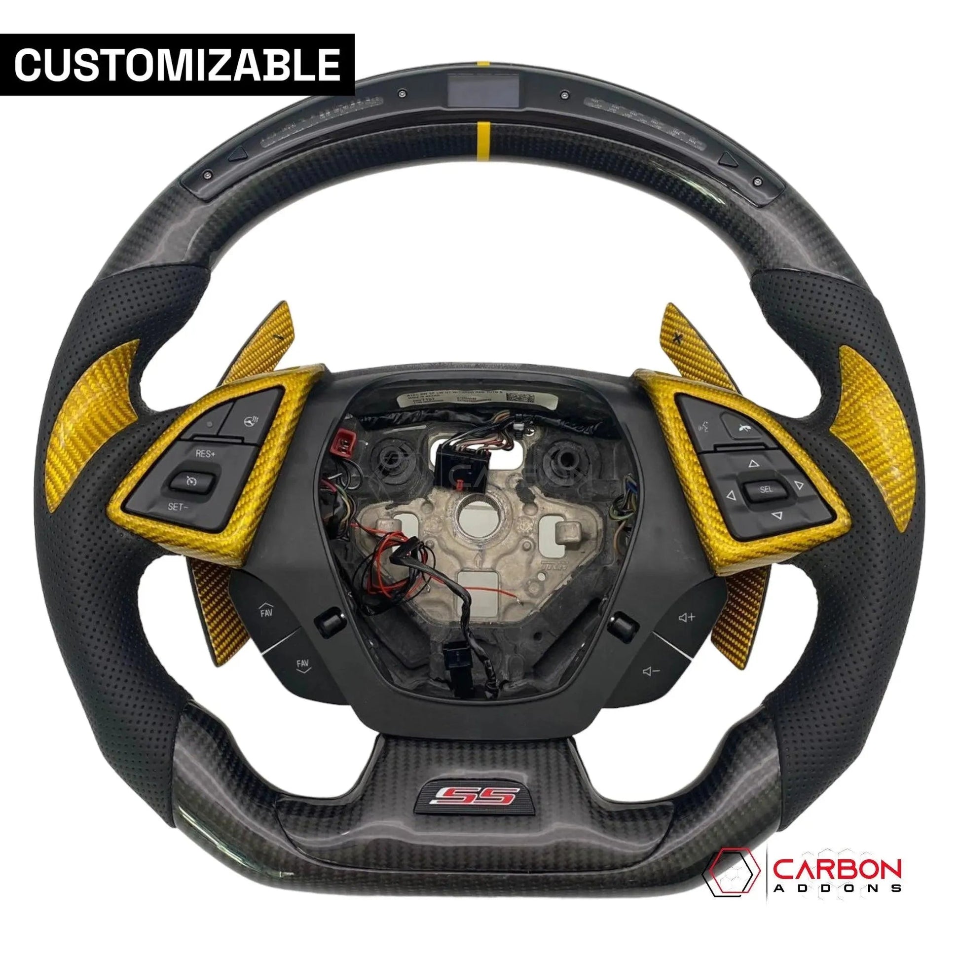 SET-OFF YOUR 2016-2023 6th GEN CAMARO'S INTERIOR WITH OUR FULLY CUSTOMIZABLE CARBON FIBER STEERING WHEEL!