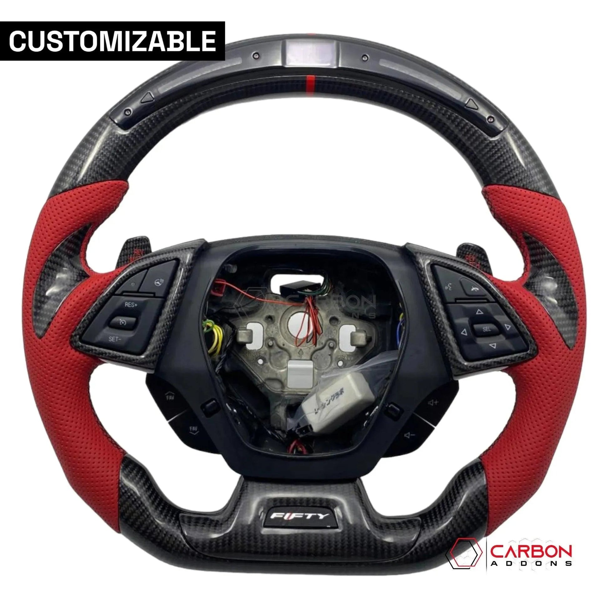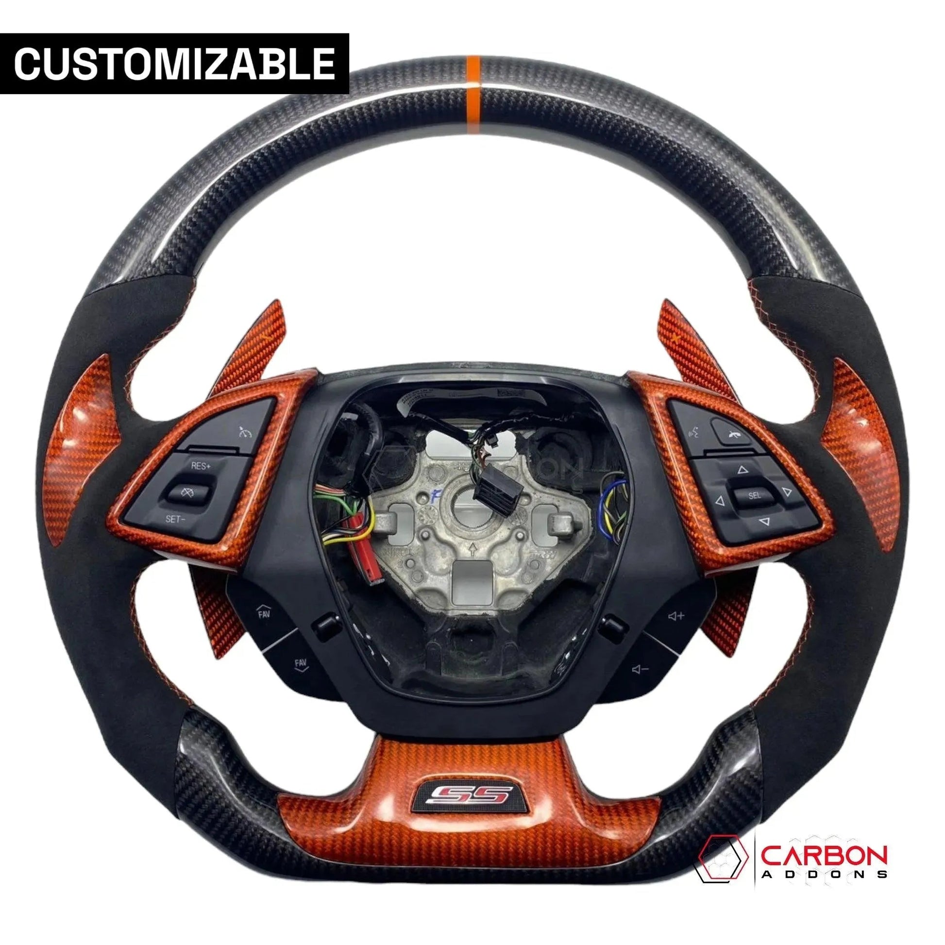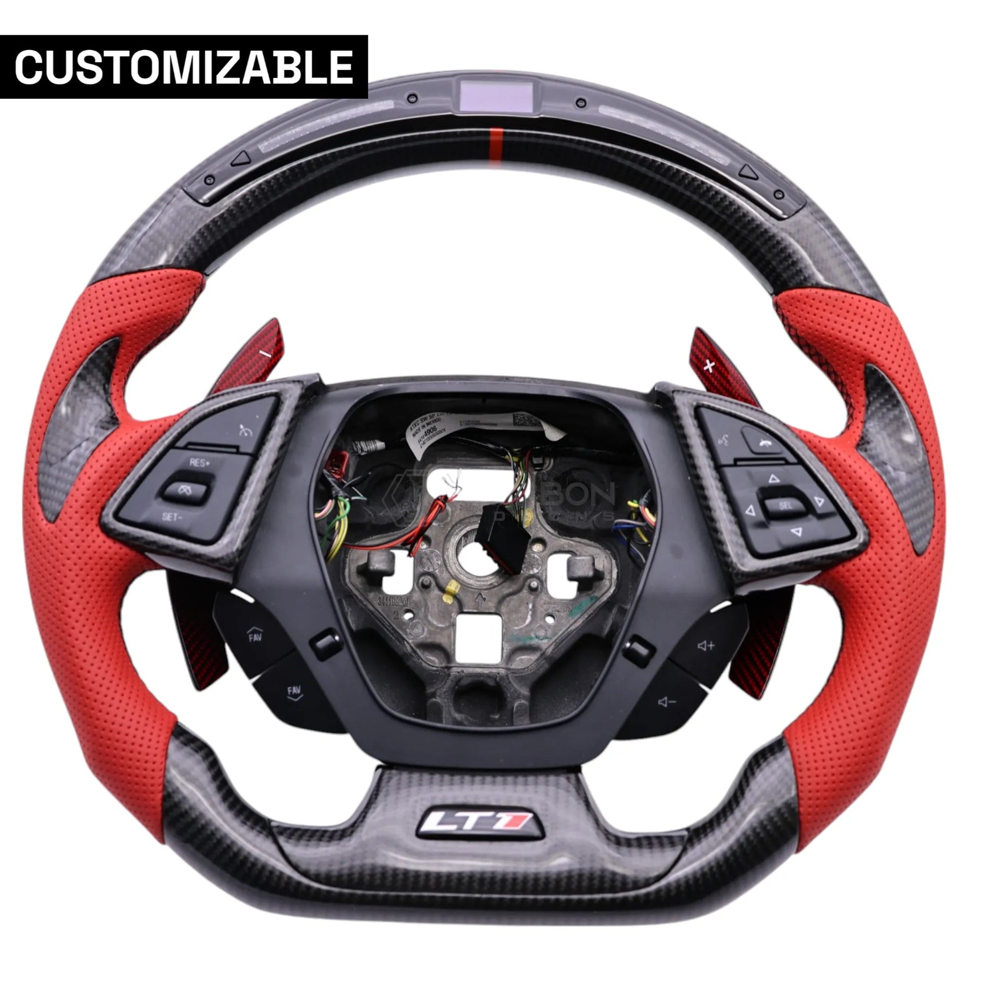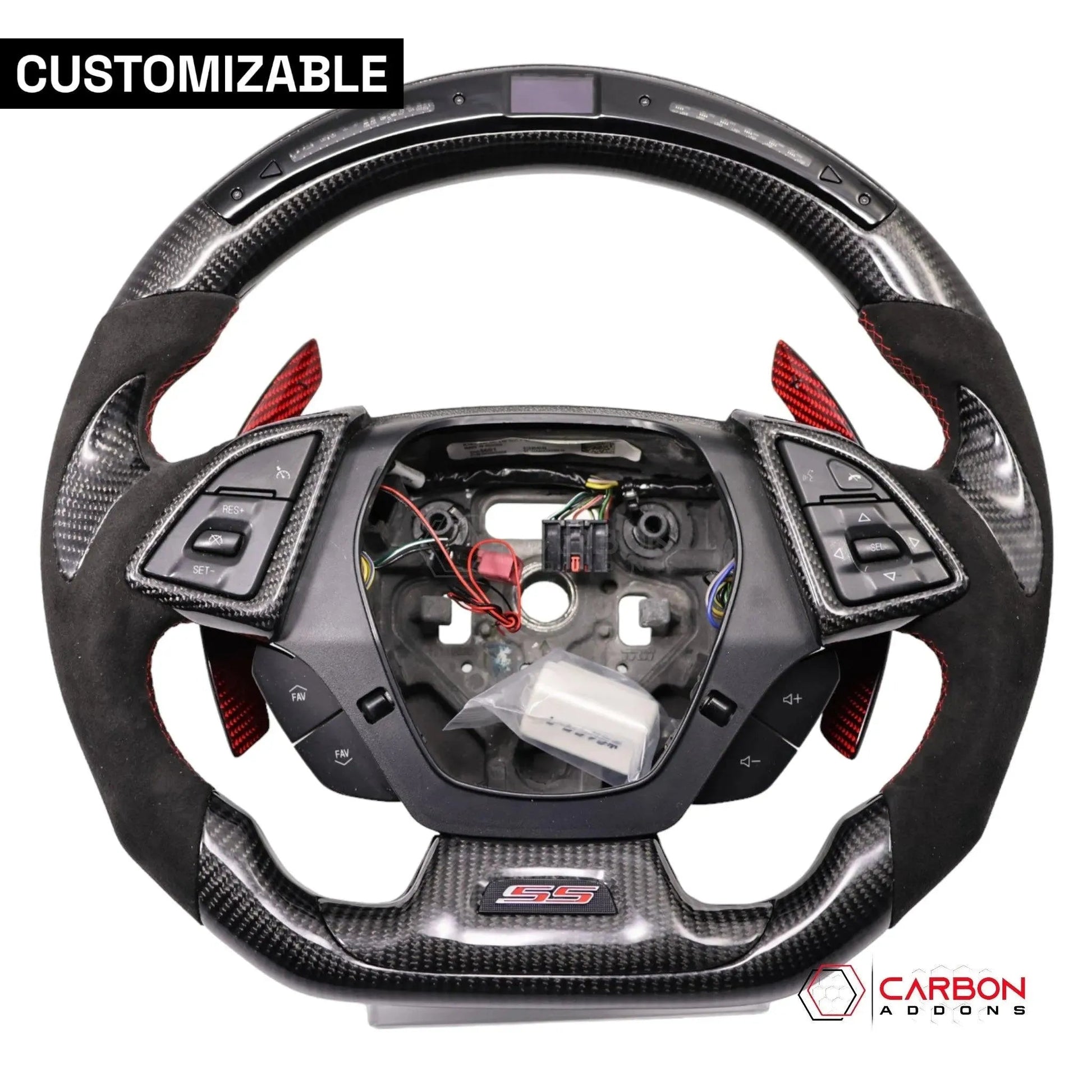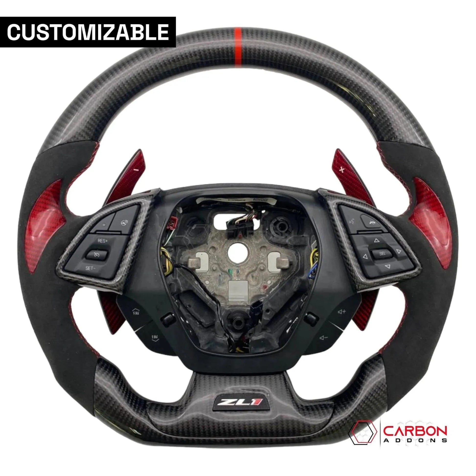 SET-OFF YOUR 2016-2023 6th GEN CAMARO'S INTERIOR WITH OUR FULLY CUSTOMIZABLE CARBON FIBER STEERING WHEEL!