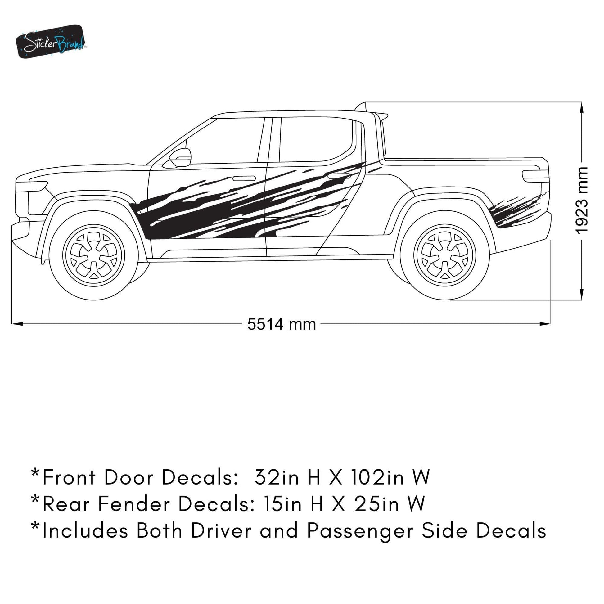 - Size: Rear Fender Decal: 25in W X 15in H