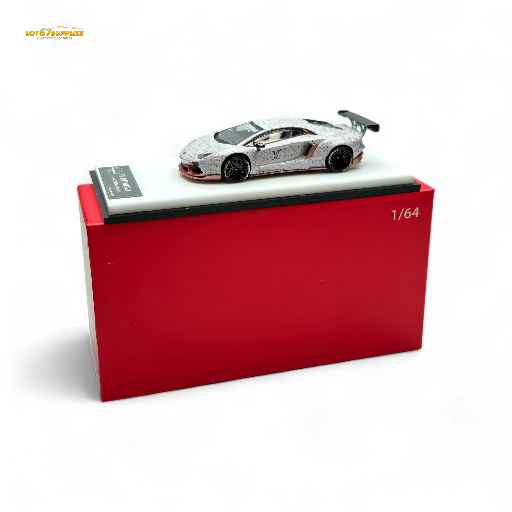 King Model Lamborghini Aventador LP700-4 LB 1.0 White LV Livery 1:64