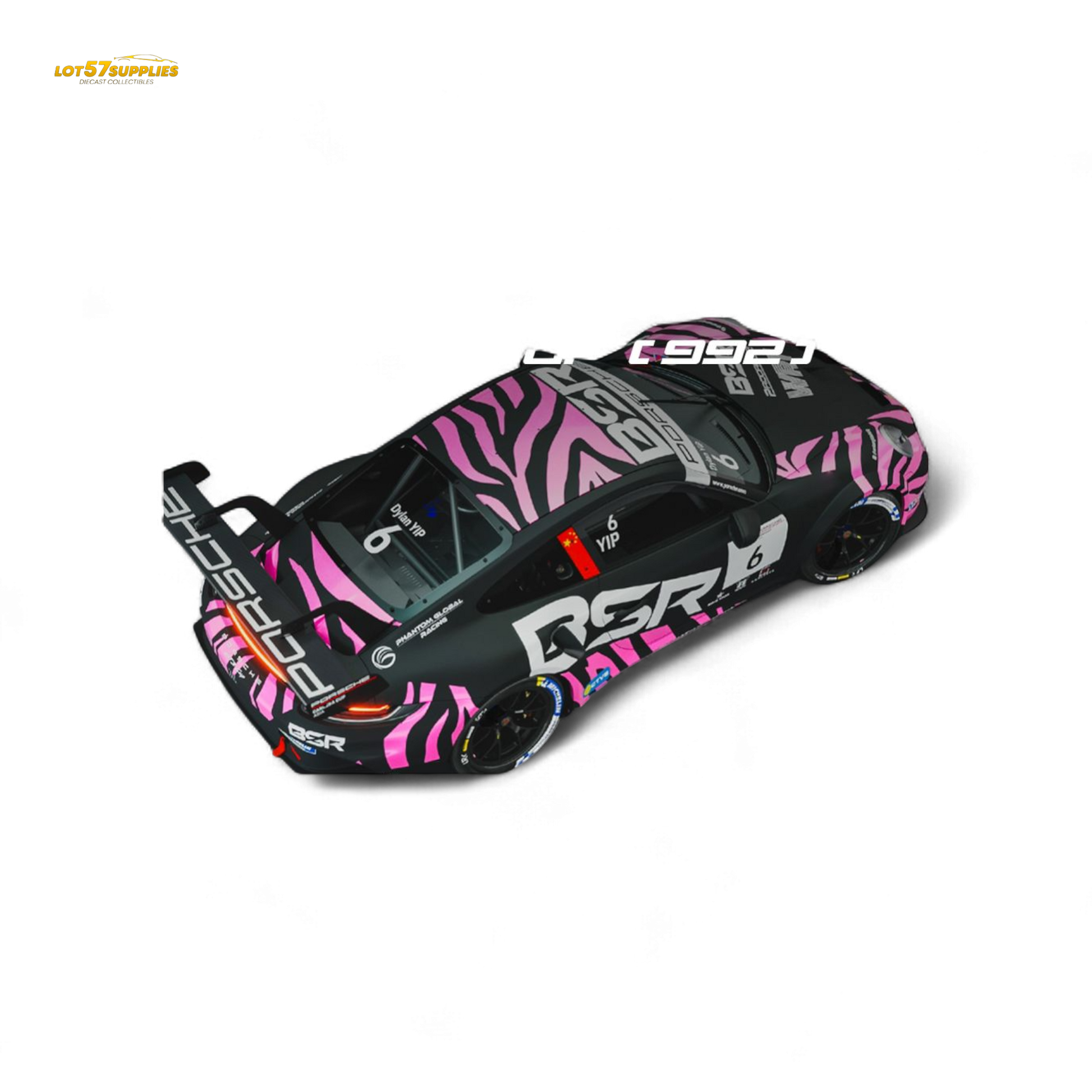Step into the fast lane with the Carrera Cup Zebra Edition Set, featuring a high-detail Porsche GT3 race car wrapped in bold pink-and-black zebra livery. This 1:64 scale stunner comes with a matching custom container and a fully suited driver figure — ready to steal the show on your shelf.