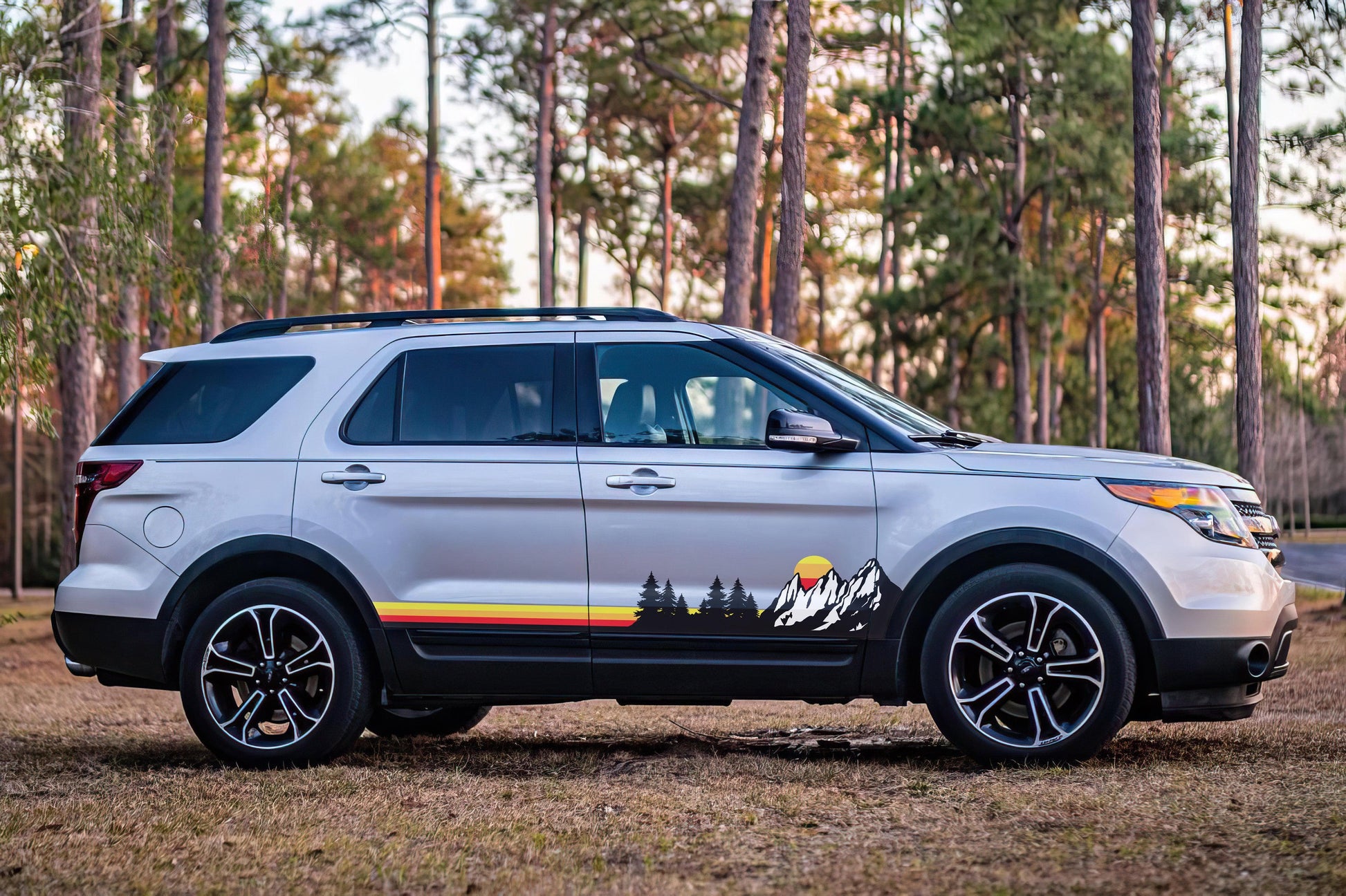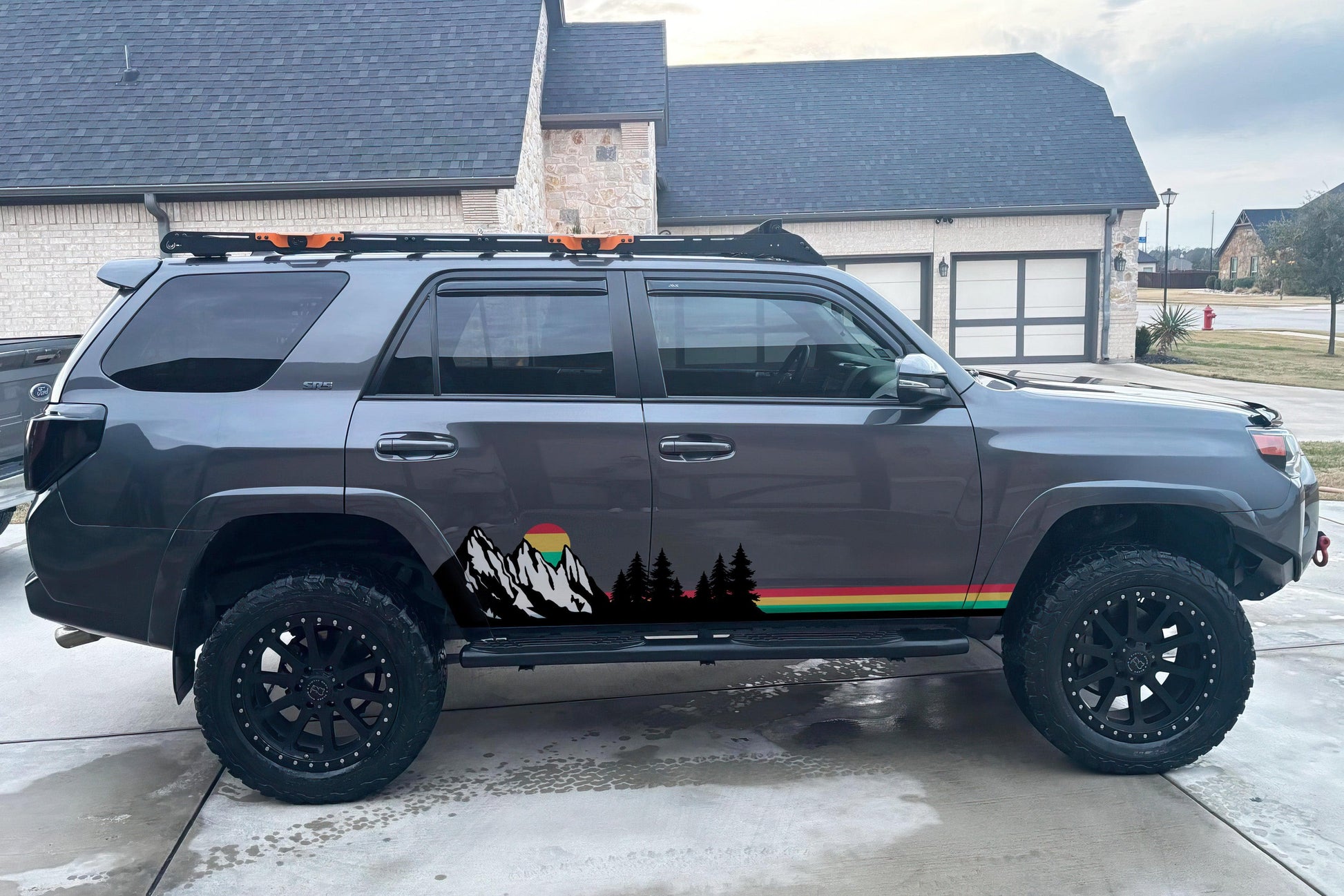 Mountain Forest Sunset Truck/Car Decal. Yellow, Orange, Red Color Scheme. #6811