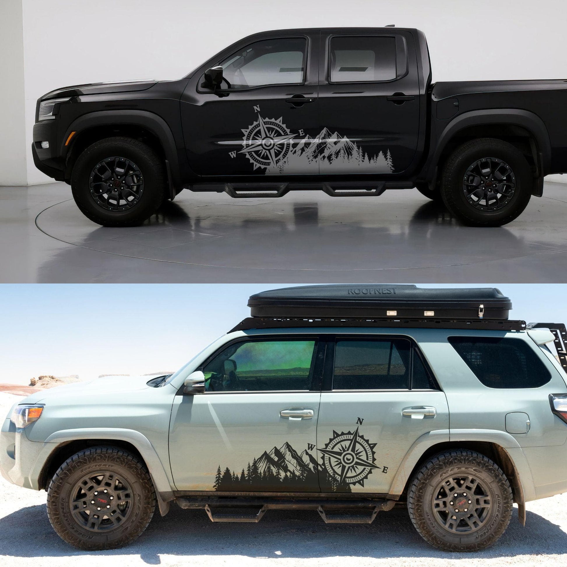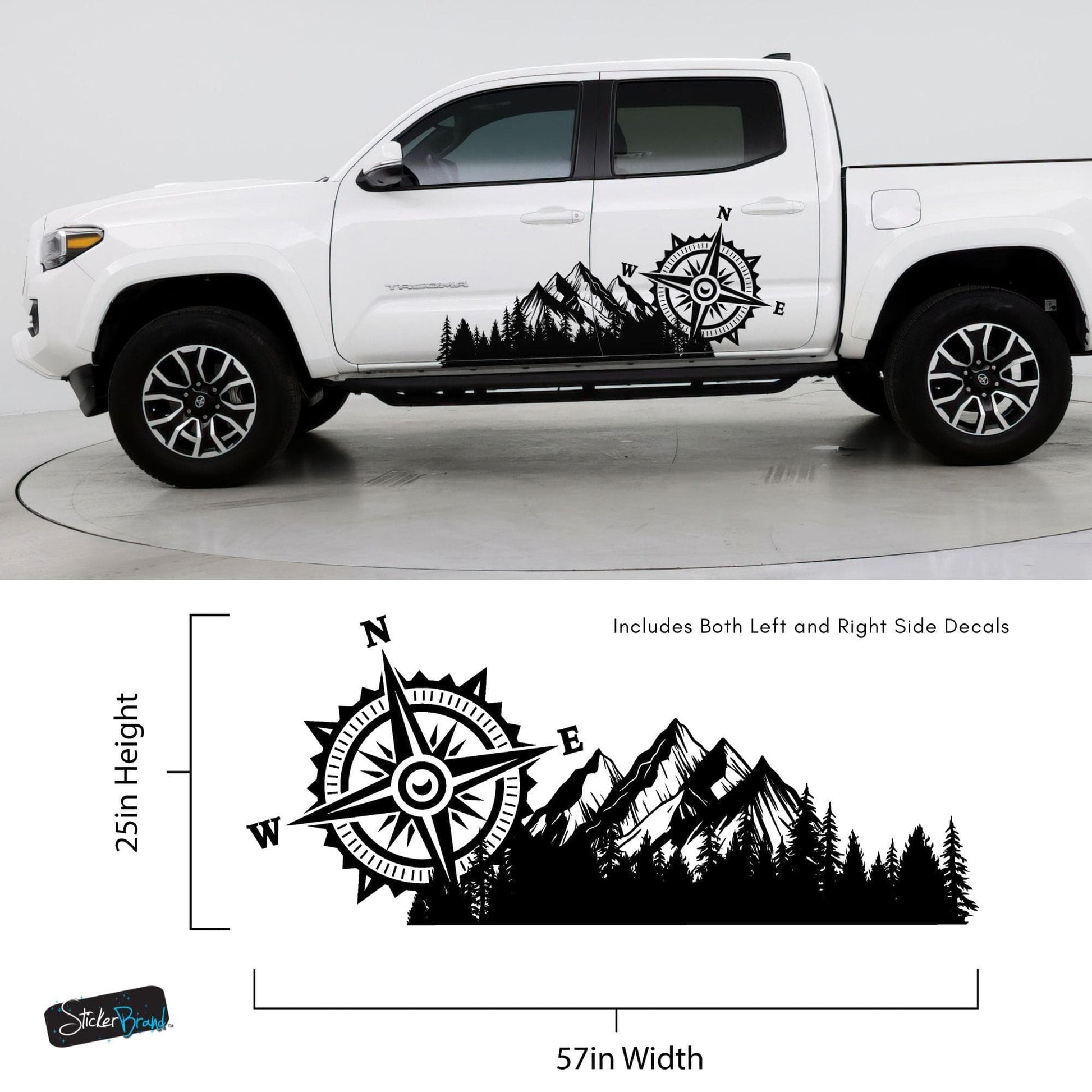 Mountain with Compass Truck Graphic Decal Sticker. Off-Road Overlander. #6909