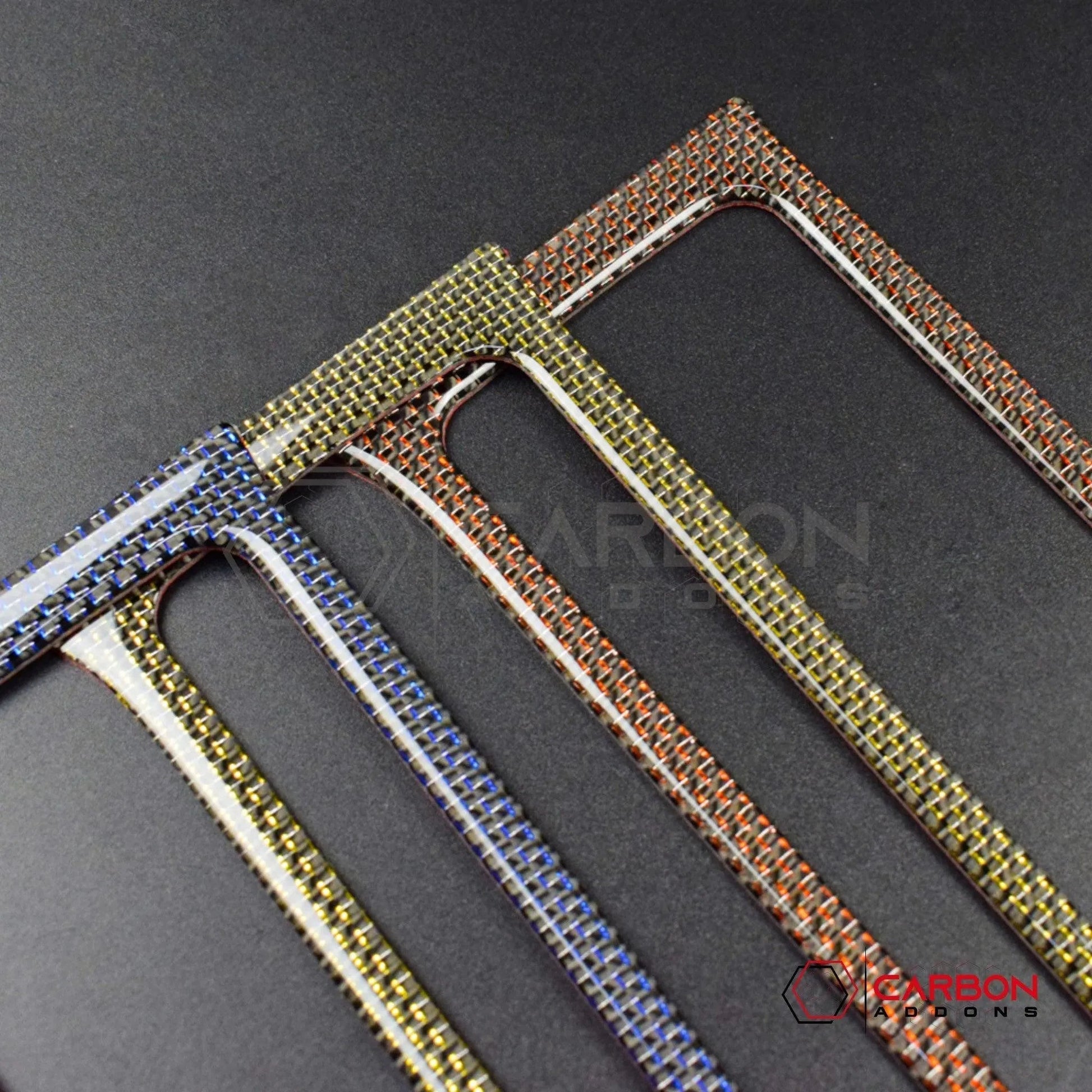 This carbon fiber interior overlay is made using real carbon fiber woven in a 2x2 twill weave with an added metallic thread that reflects it's color for an added accent to the already beautiful carbon fiber strands. If you do not want the added metallic thread, you can find our standard carbon fiber version on another listing. It is designed to upgrade the look of your Mustang's interior. It is not a replacement part, this is a carbon fiber overlay that goes directly on your Full Dashboard Trim and is installed via included adhesive which means no professional installation is required.