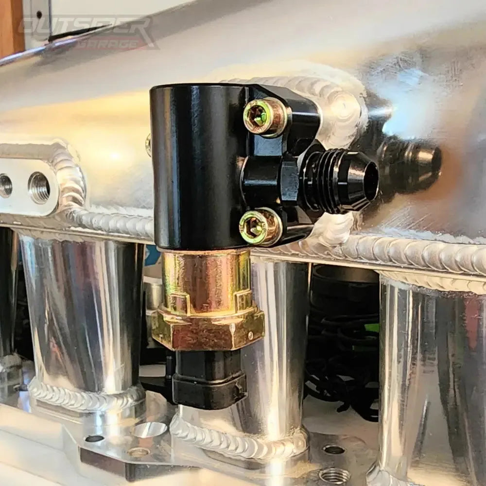 Introducing the Outsider Garage Billet Idle Air control Valve for the Nissan RB25DET. Designed around the 3 bolt R33 IACV flange, this billet housing uses a common GM 4 pin Stepper motor that is easy to source and setup. We've also added 6AN ORB inlet threads so you can choose to use a hose fitting or an upgraded AN line. Flows approximately 20% more air than OEM.