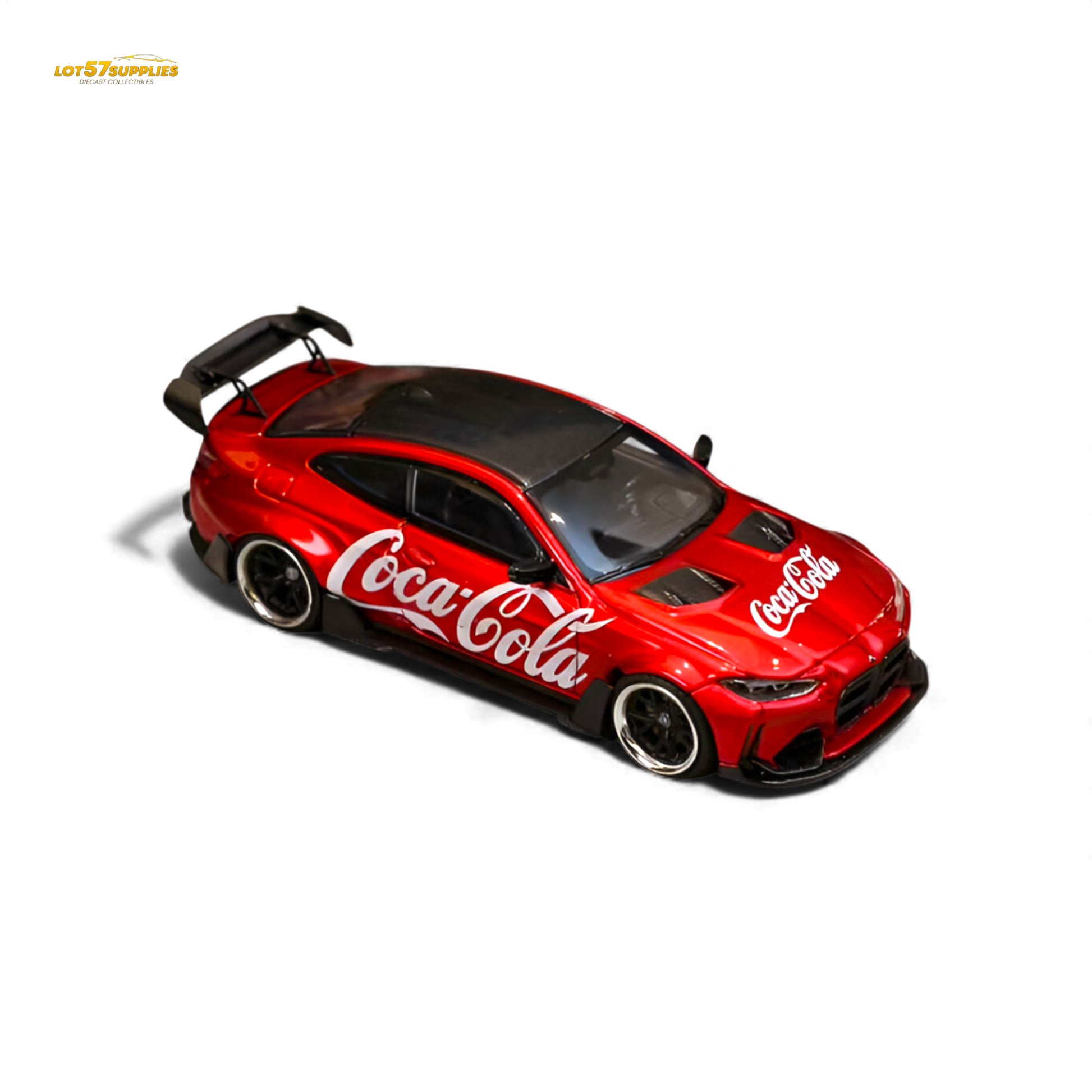 Wide-body modified BMW G82 M4 in iconic Coca Cola livery.