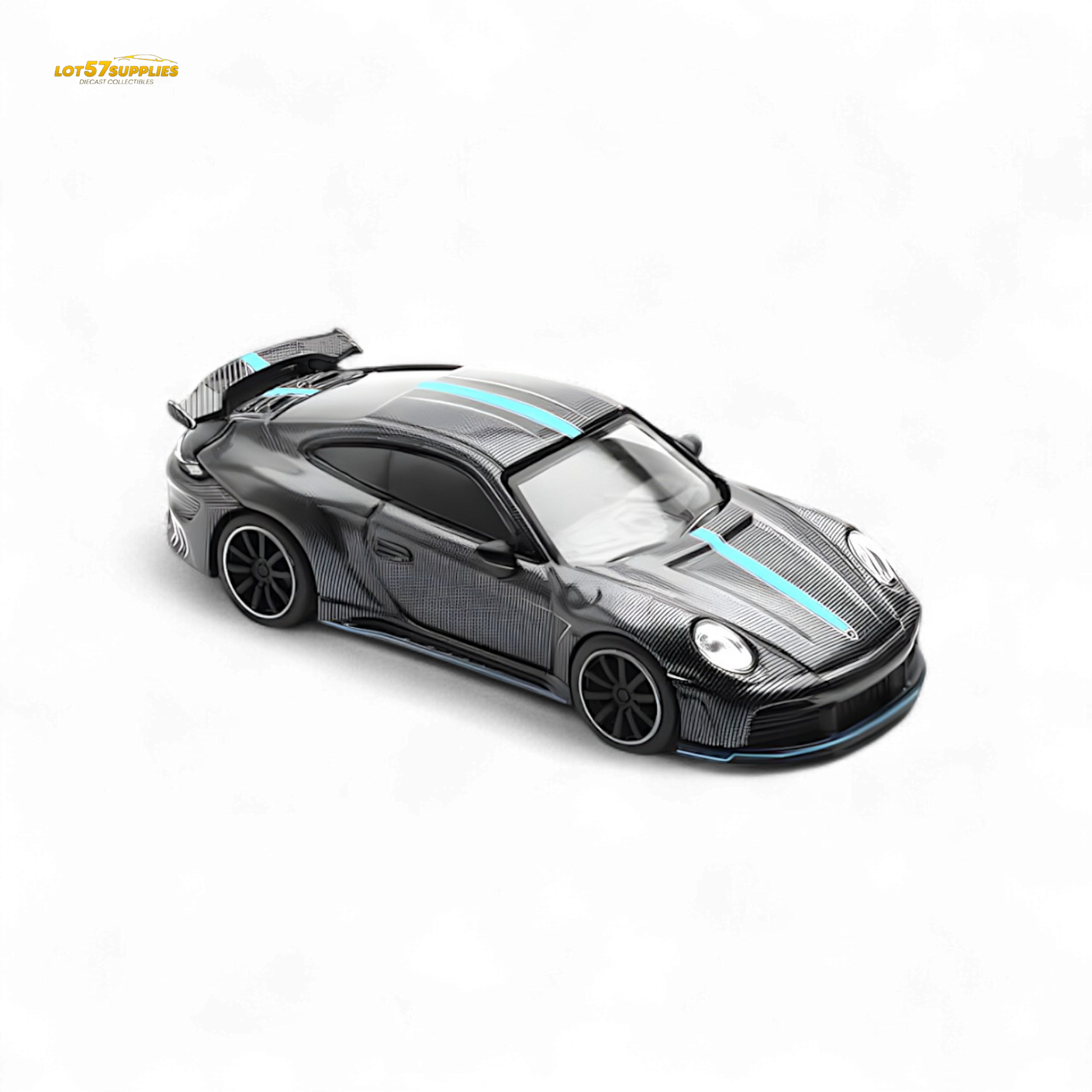PopRace Porsche 992 Stinger GTR Carbon Edition - Carbon Grey Blue Line 1:64