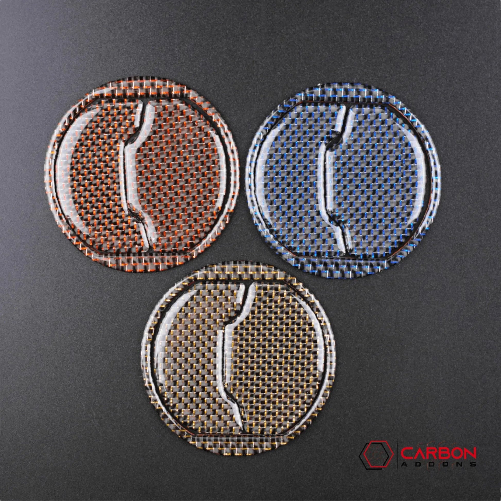 This carbon fiber interior Center Air Vent Outlet Trim Overlay is made using real carbon fiber woven in a 2x2 twill weave with an added metallic thread that reflects it's color for an added accent to the already beautiful carbon fiber strands. If you do not want the added metallic thread, you can find our standard carbon fiber version on another listing.