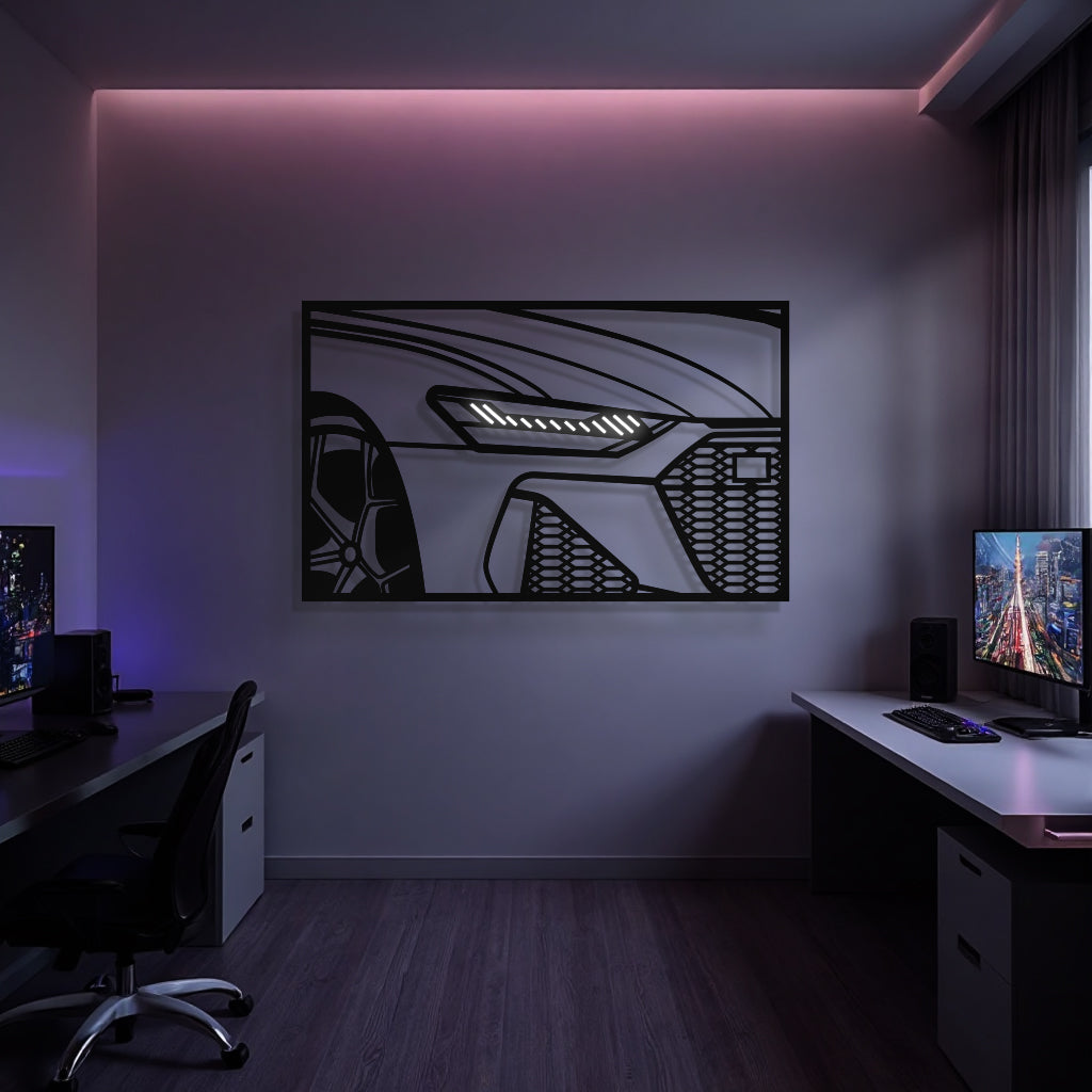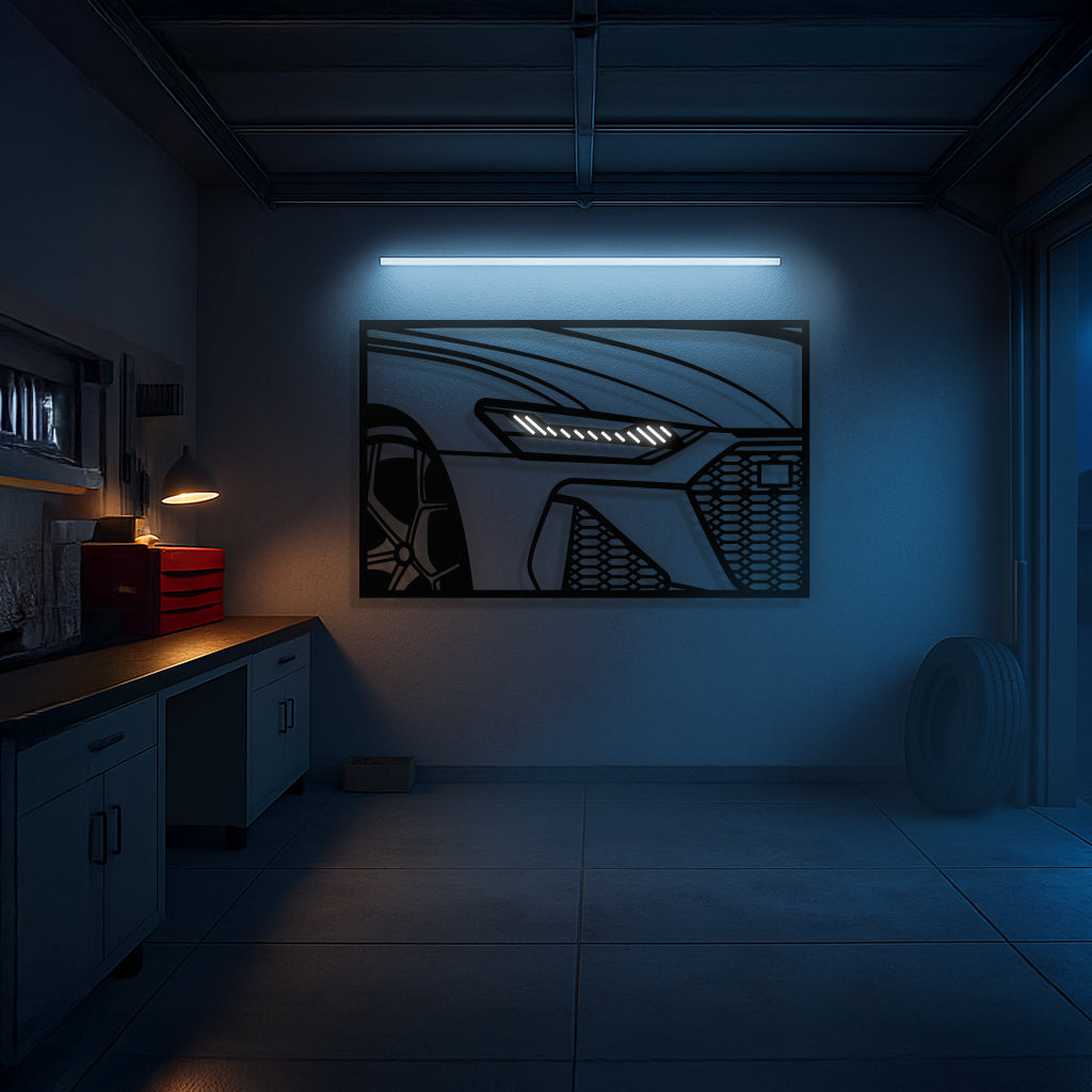 This RS6 Avant C8 Apex Front View Metal Neon Frame Wall Art will turn any car enthusiast's home, garage, hallway, living room, bedroom, or office into a unique space, add a stylistic look and captivate petrolheads as well as visitors.