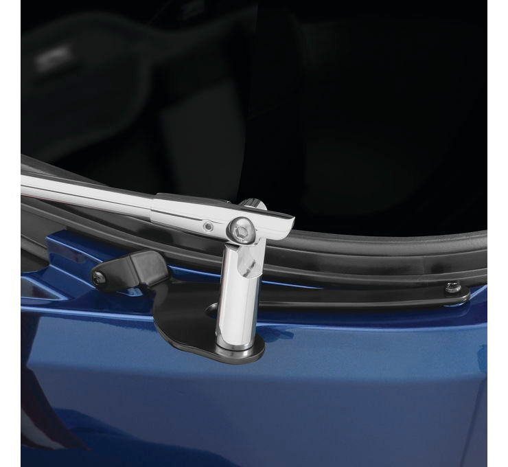 Show Chrome® introduces the Folding Flag Pole for Spyder RT and F3 LTD trunks. These flag poles conveniently fold forward allowing them to tuck out of the way for easy cover placement. Available in either a right or left mount, so you can choose the perfect side or get them both. A 10-degree tilt allows a slight rear angle and mounts to two existing fairing hole mounts. A longer screw and nut are included to bolt through the inner trunk shell for a secure fit.