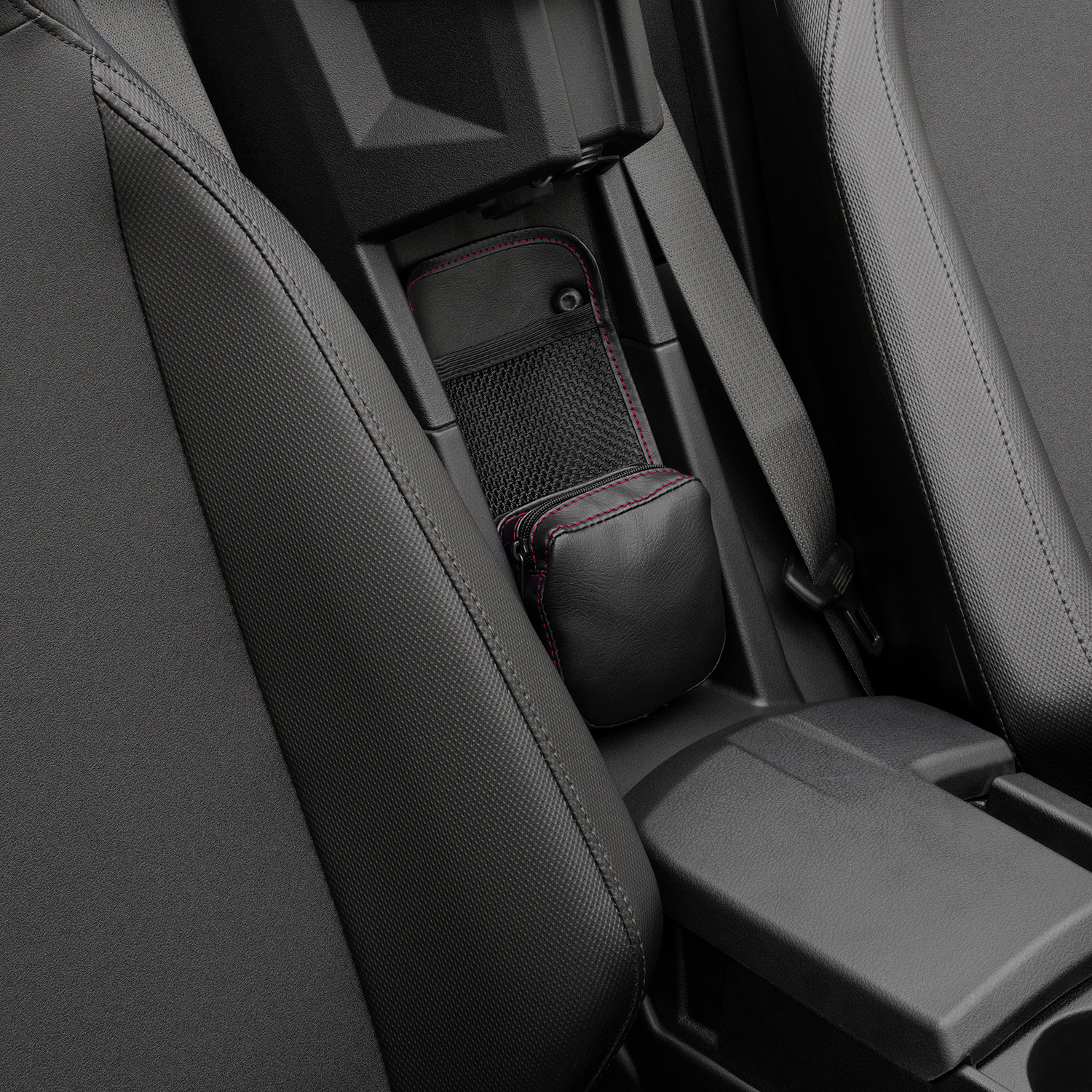 SHOW CHROME Center Console Kaliber Organizer - Black with Red Stitching H44-3RED