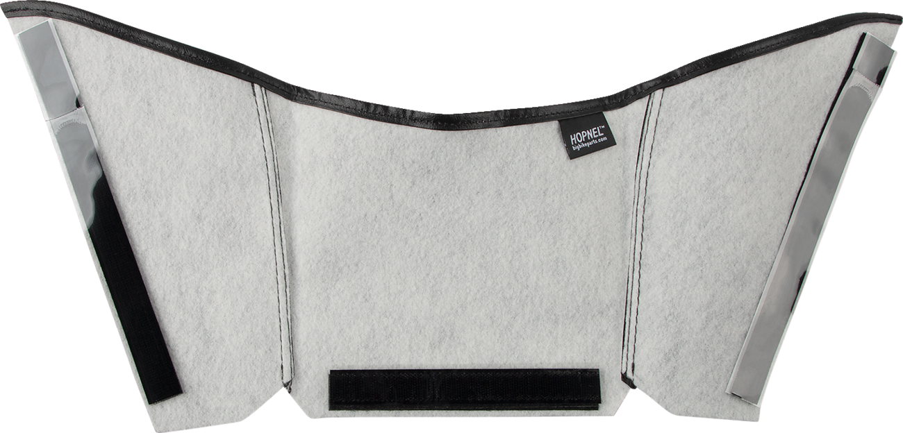 - Securely attaches with hook-and-loop material to the gas tank, allowing easy access for cleaning