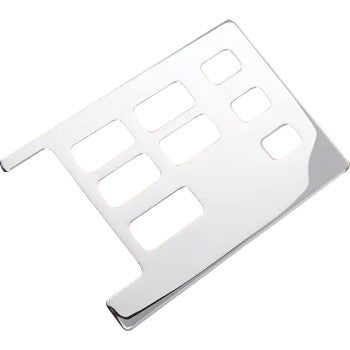 - Chrome plated, stamped steel accent attaches to the panel securely and easily with double sided tape provided