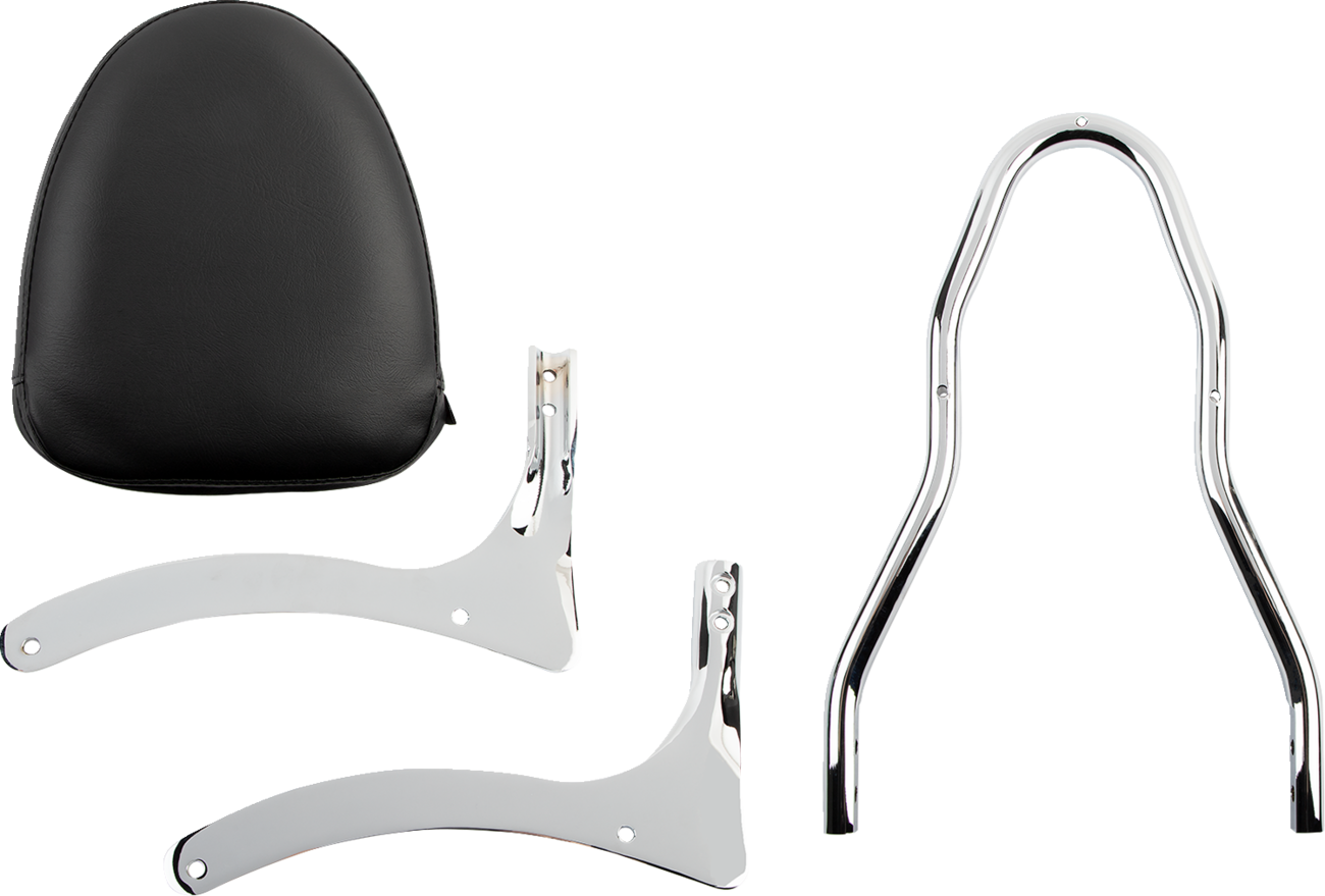 - Kit includes sissy bar, pad, mounts, and mounting hardware