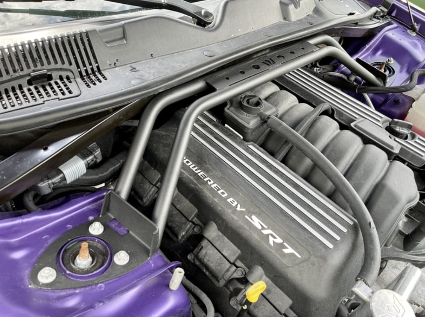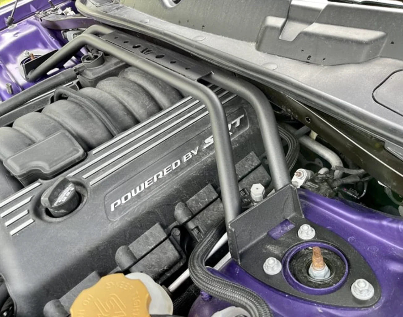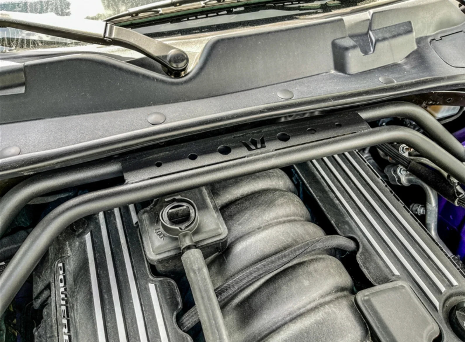 Note: Does not fit the Hellcat or V6. This brace fits the 392, 6.4L, 5.7L engines. 5.7L engine cover must be removed.