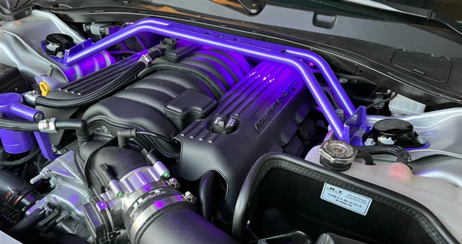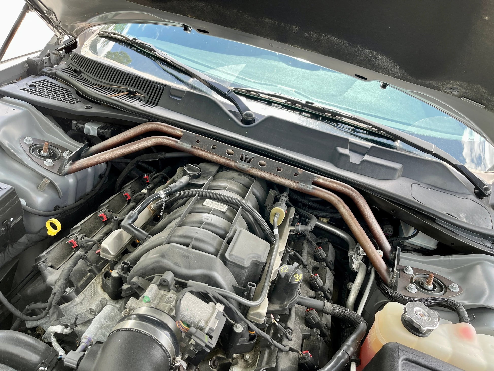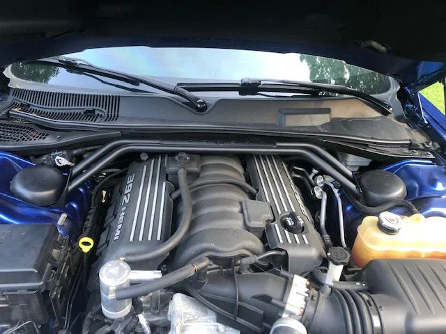 Note: Does not fit the Hellcat or V6. This brace fits the 392, 6.4L, 5.7L engines. 5.7L engine cover must be removed.