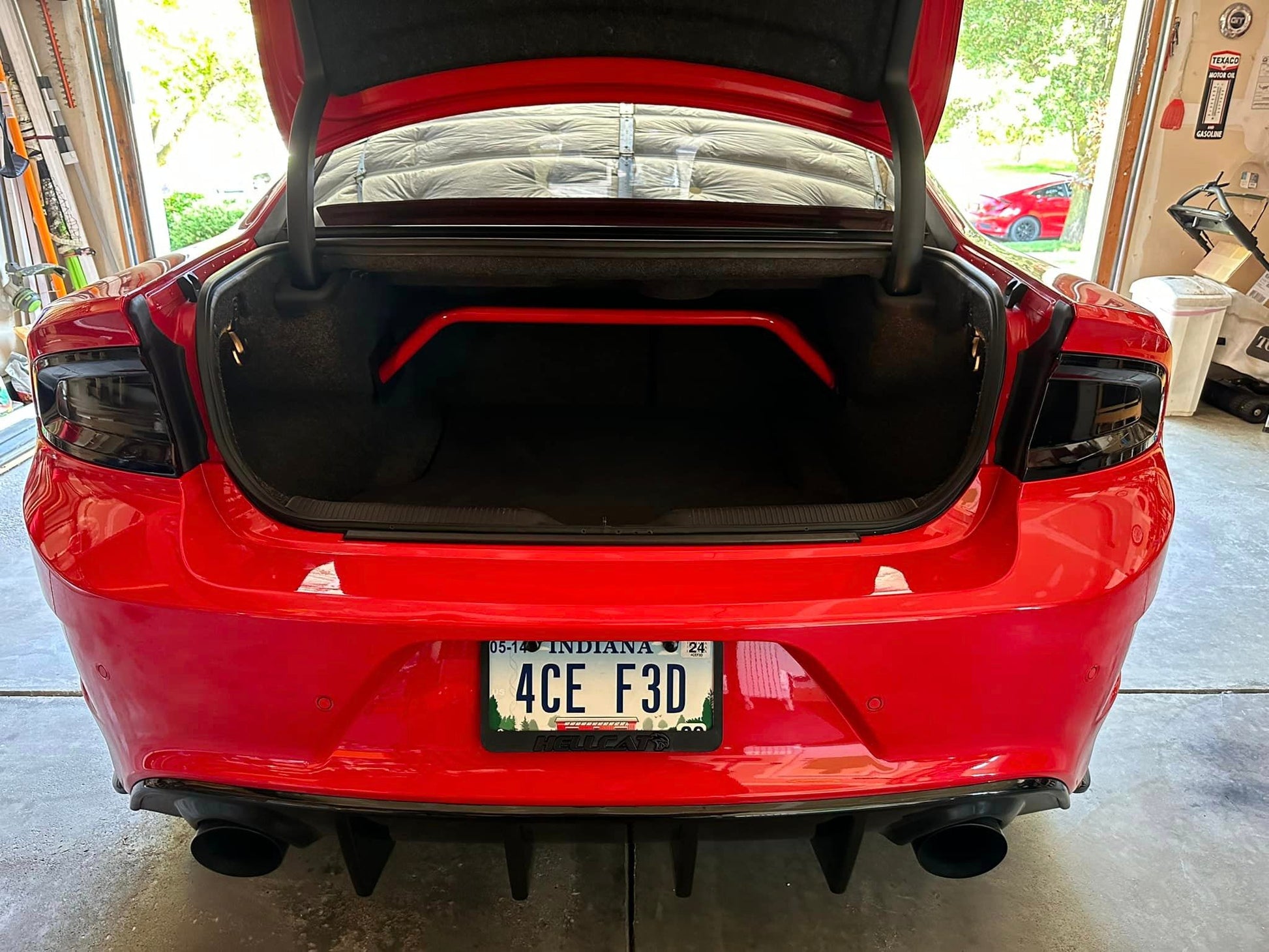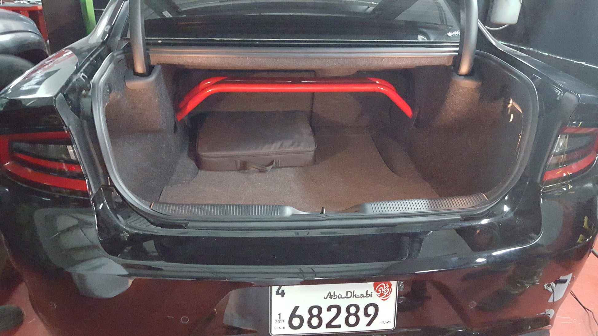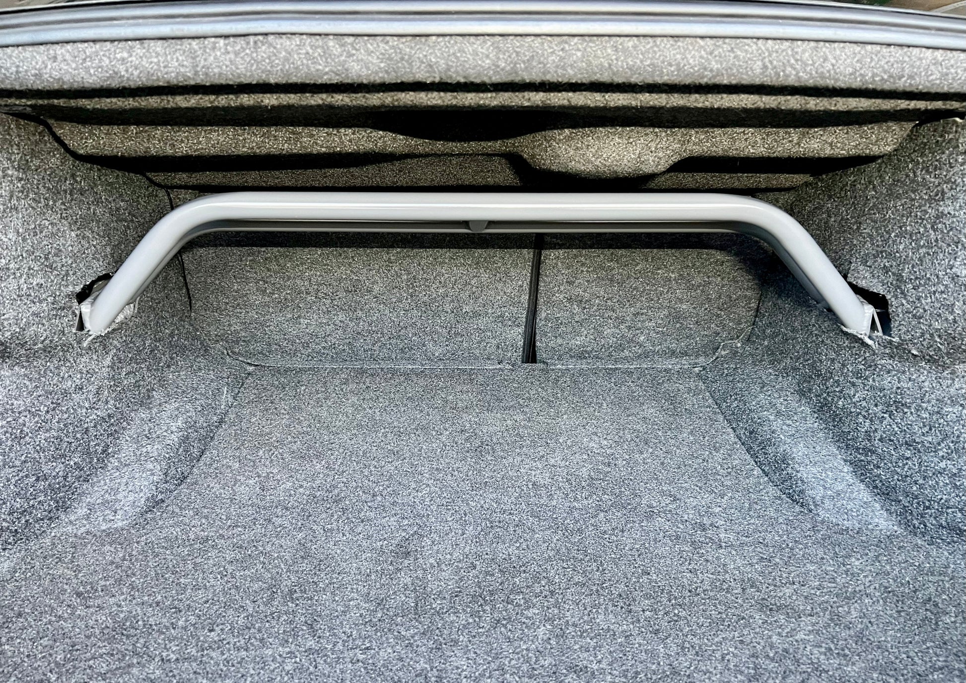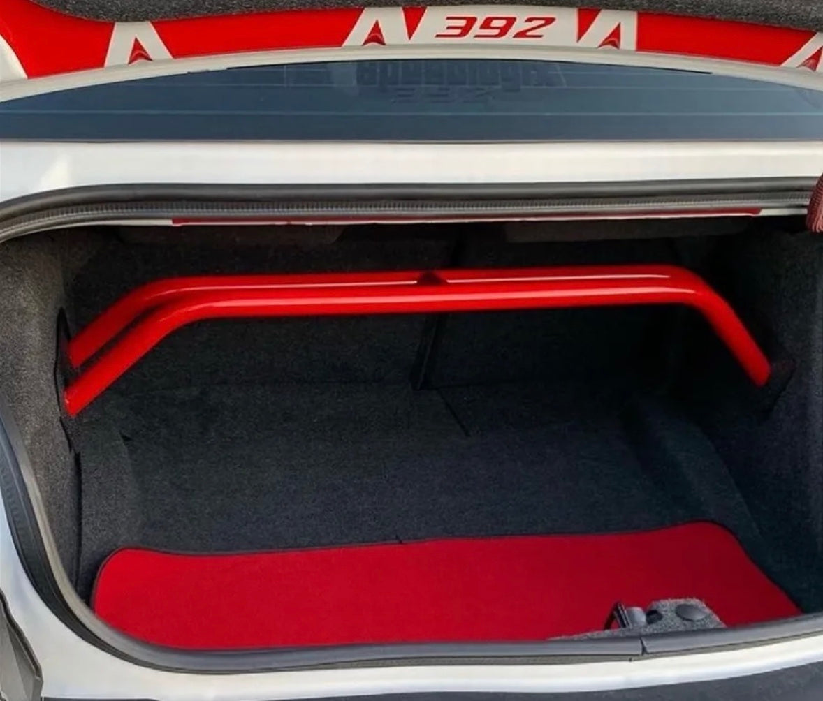 With our 2-point arched rear shock tower brace you get the benefits of tightening your rear suspension but you do not lose very much trunk space. Our steel is laser cut, precision welded by hand.
