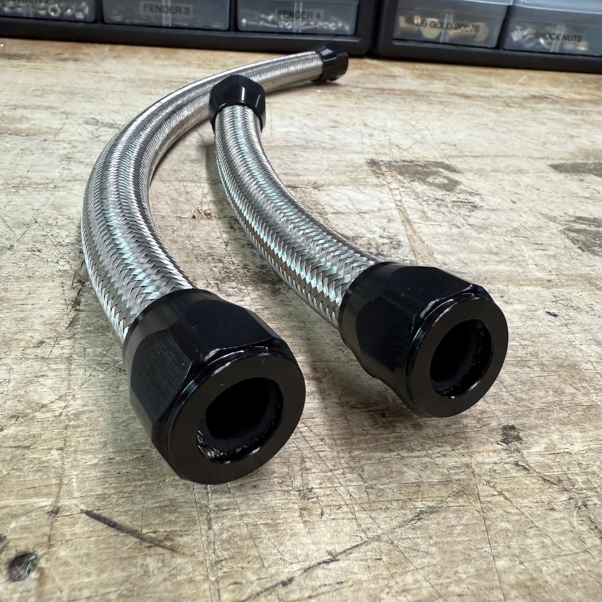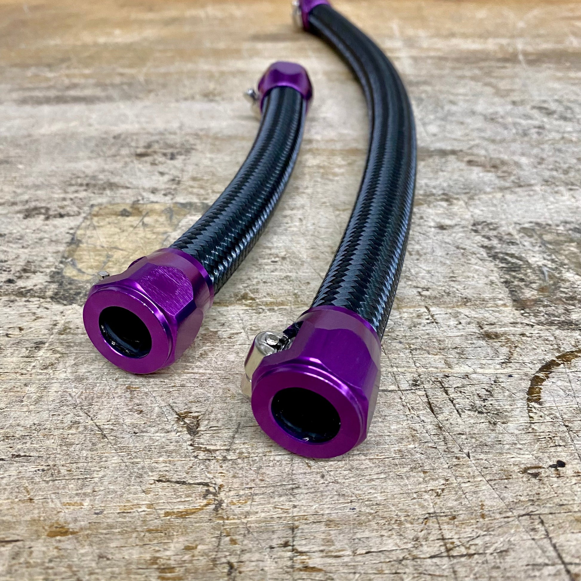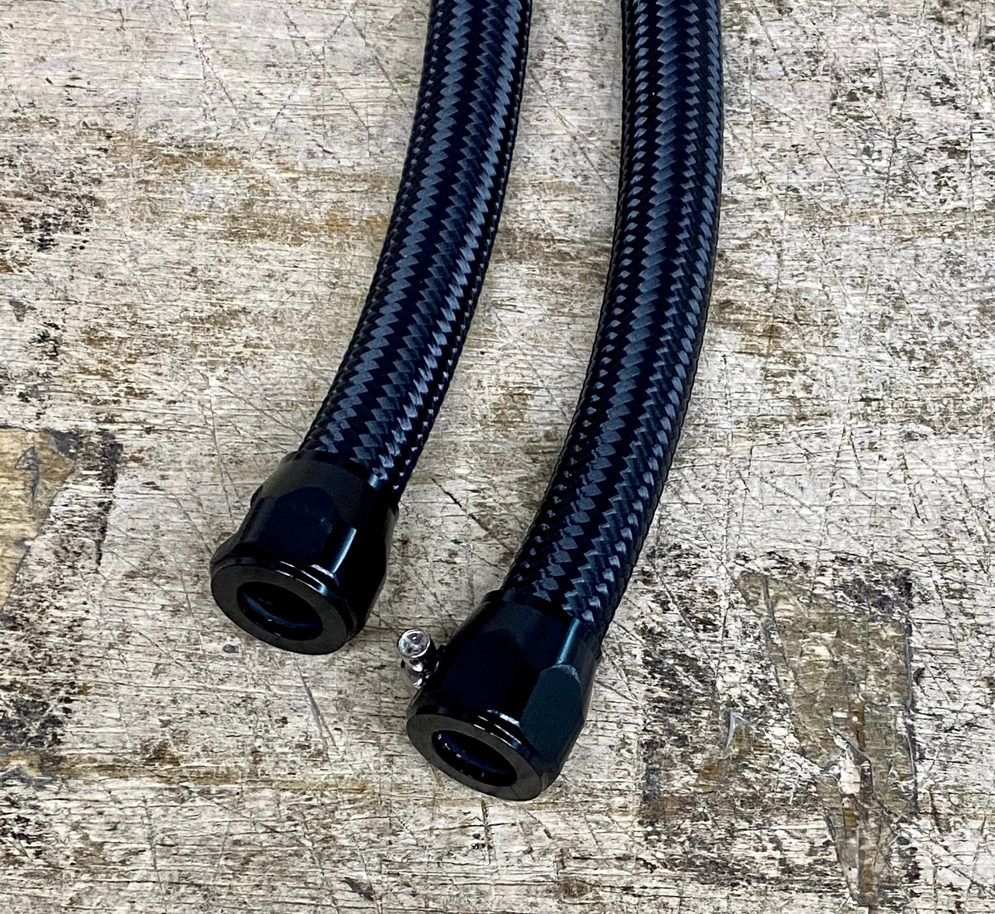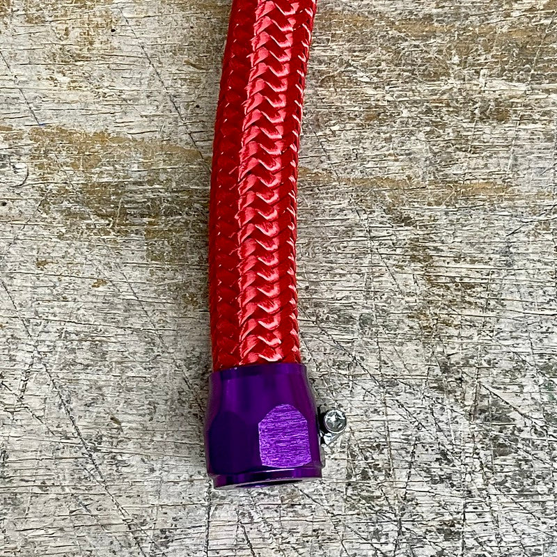 Note: you may receive an upgrade to our new in-house billet hose ends, which are CNC-machined, anodized and have a set screw for tightening.