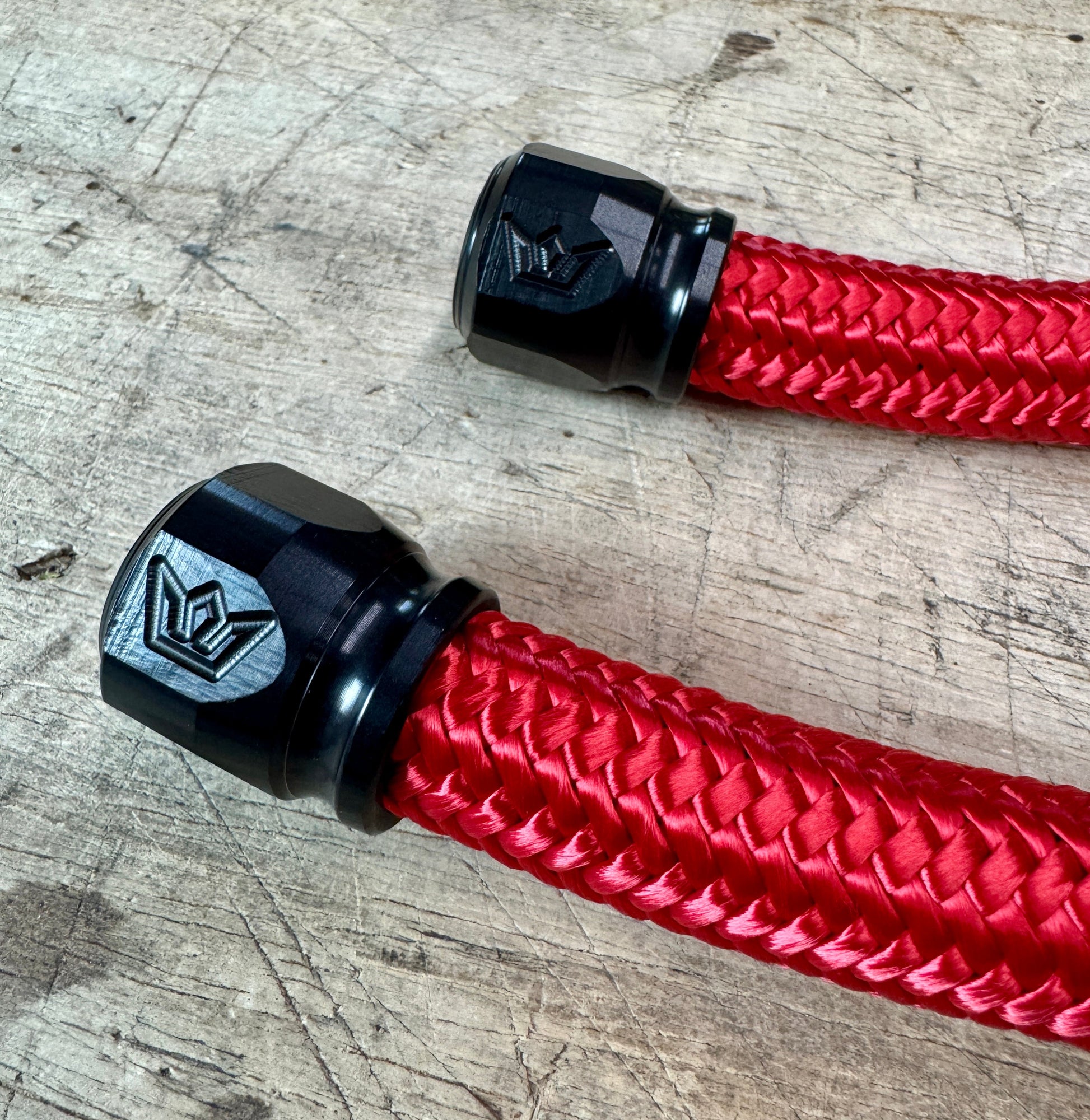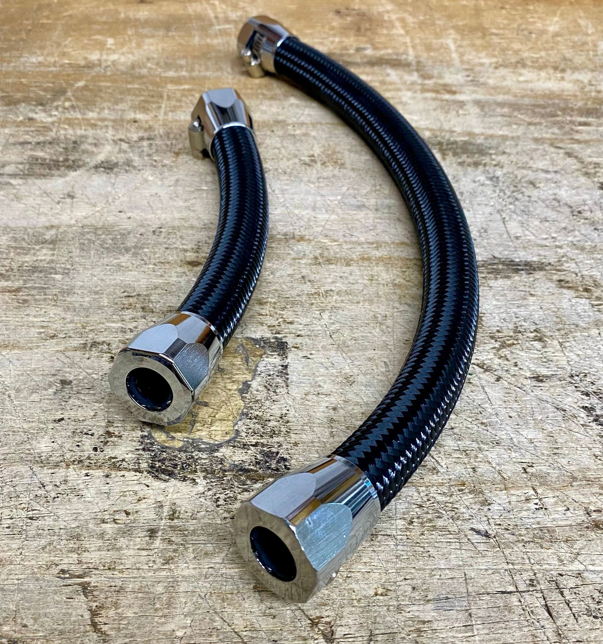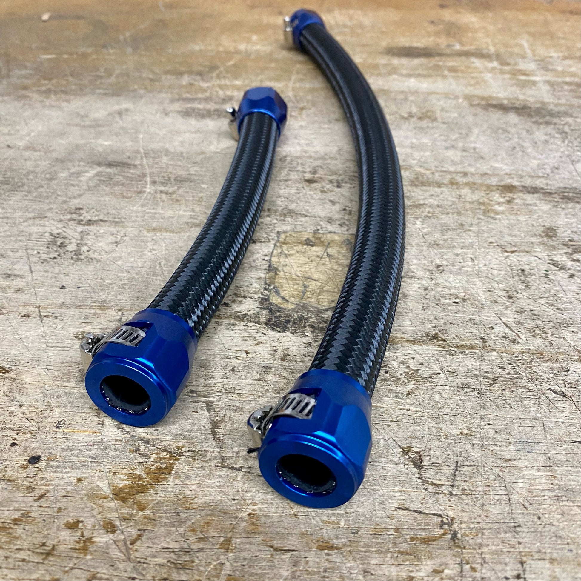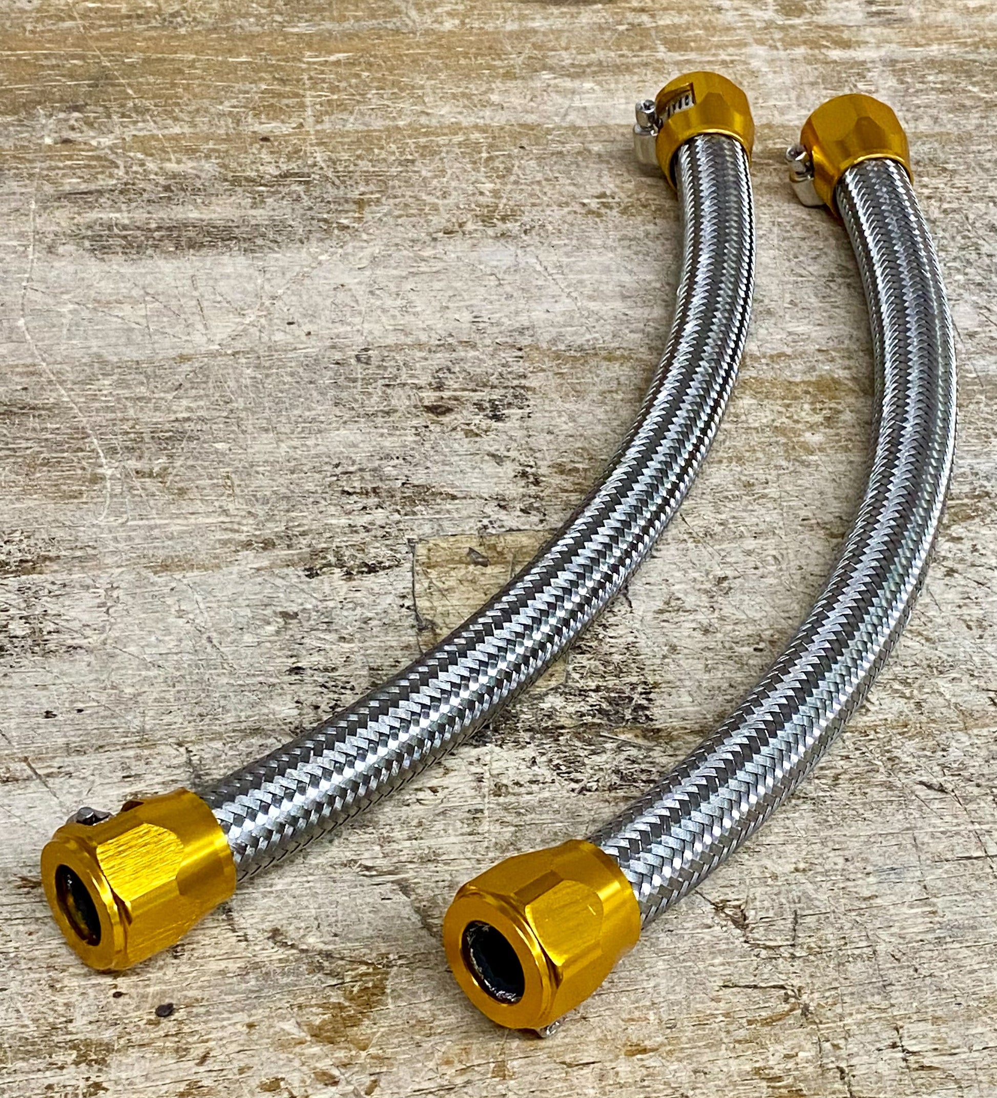 Note: you may receive an upgrade to our new in-house billet hose ends, which are CNC-machined, anodized and have a set screw for tightening.