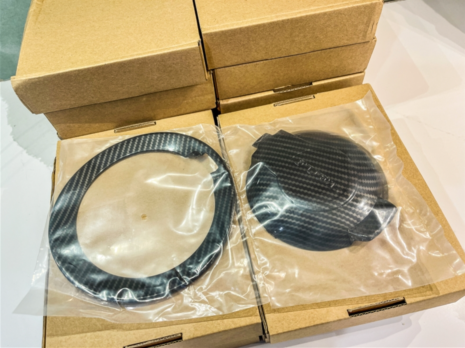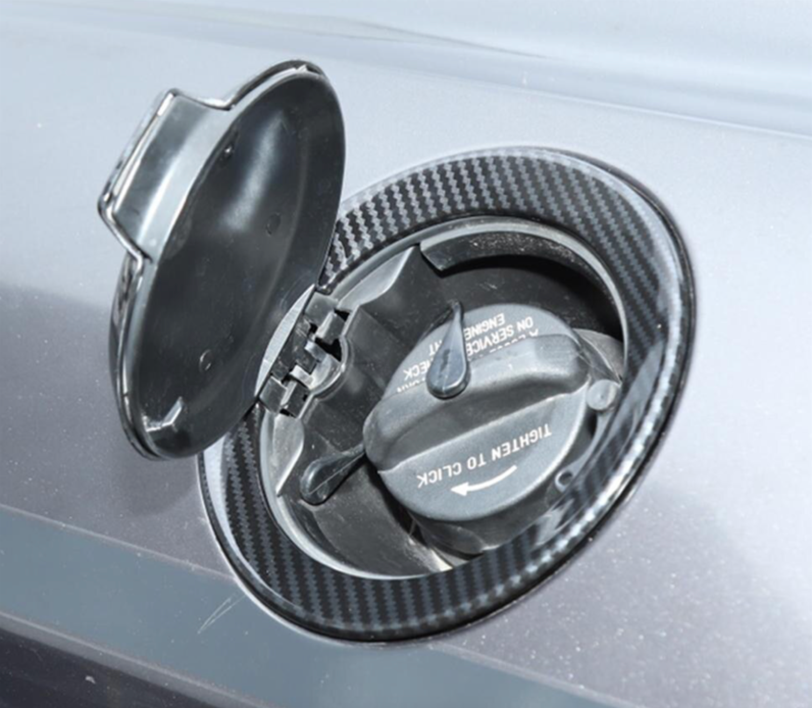 Made from ABS plastic with carbon fiber pattern look/finish. Adheres with 3M tape to your factory fuel door for a quick change in appearance.