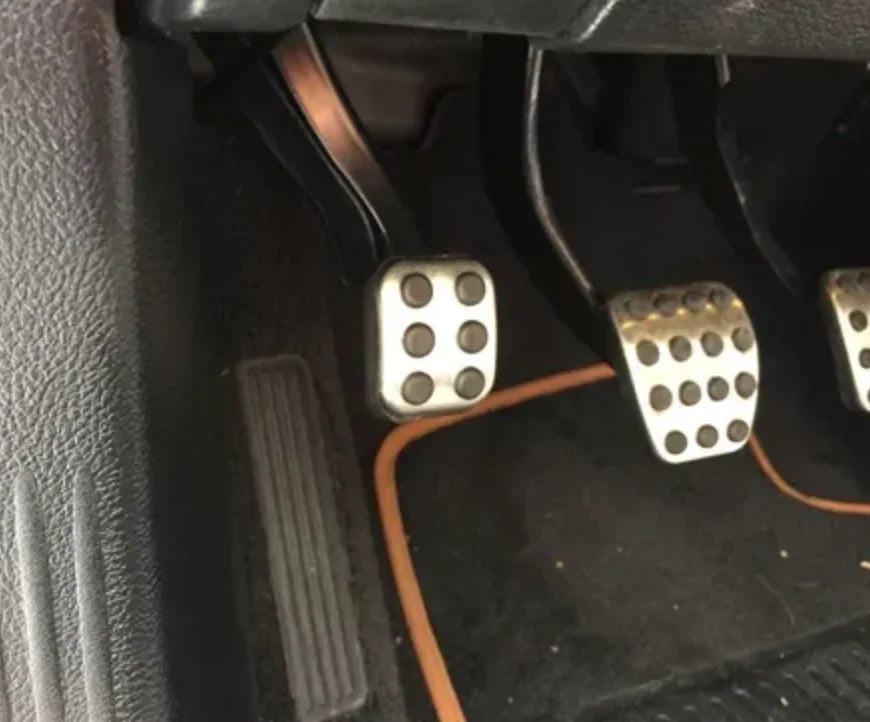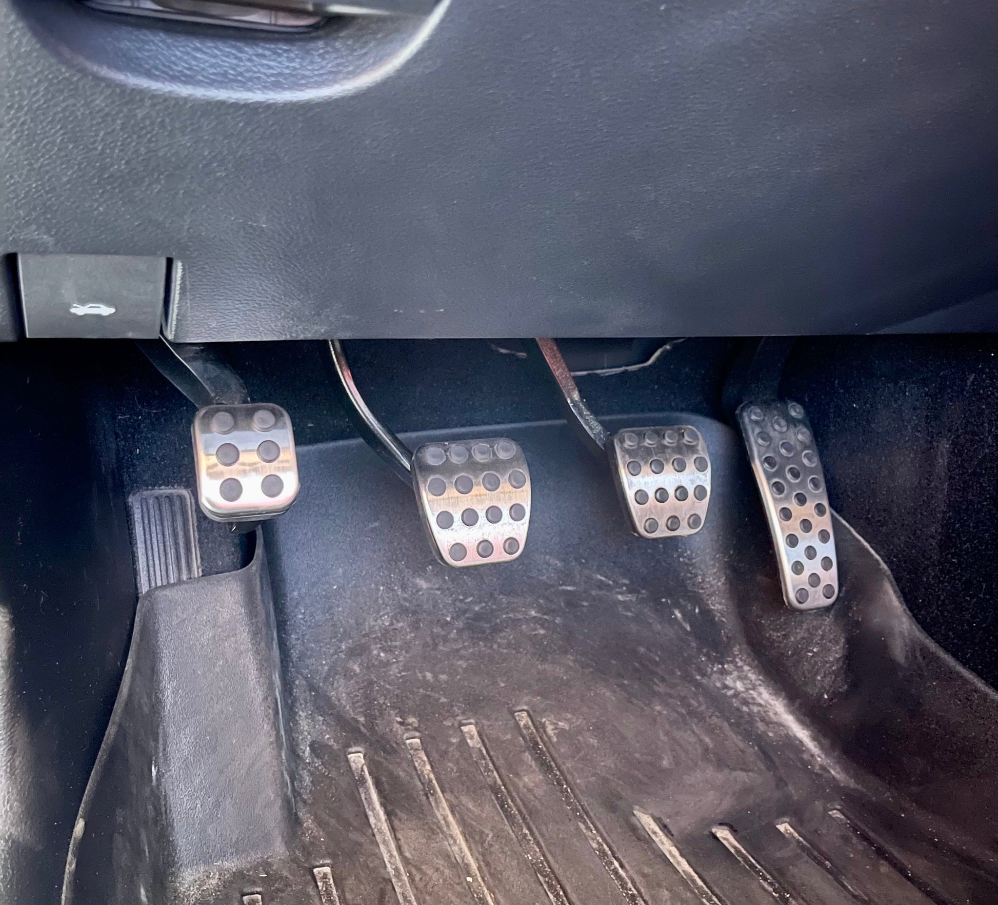 We have a parking brake cover that fits and matches the Mopar pedals on a Challenger, Charger, 300 or Magnum as shown in the photo. Simply remove the factory rubber cover and ours easily installs.