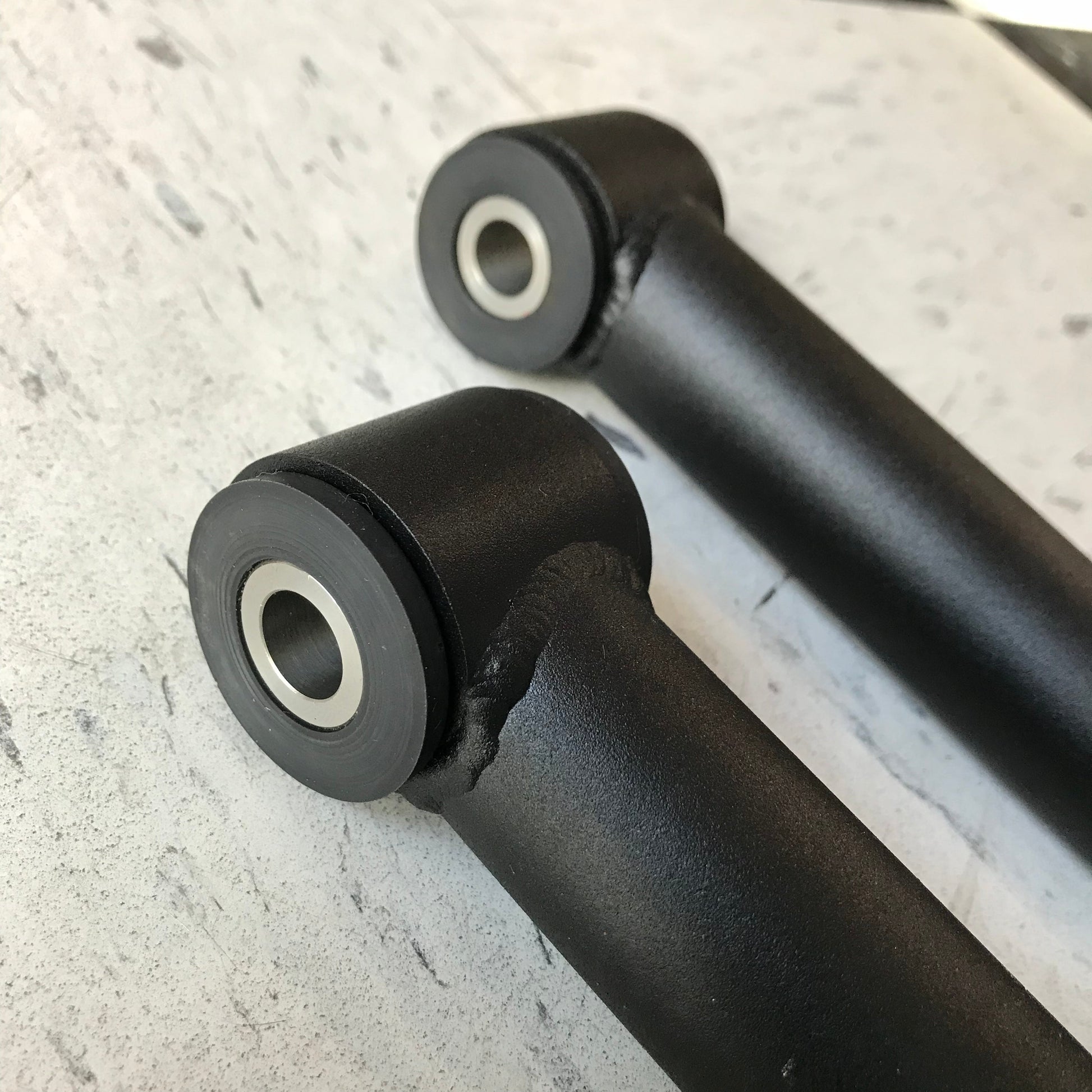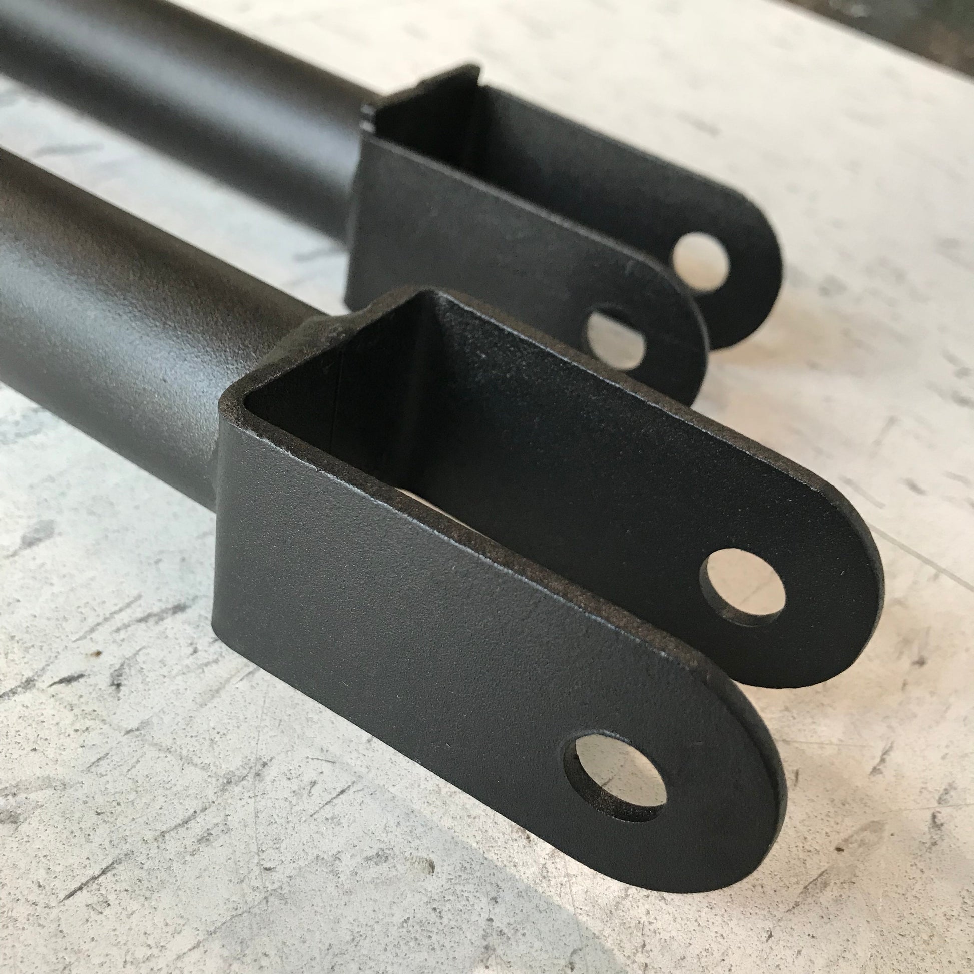 Pair of tubular chromoly tension arms with a black wrinkle powdercoat finish.