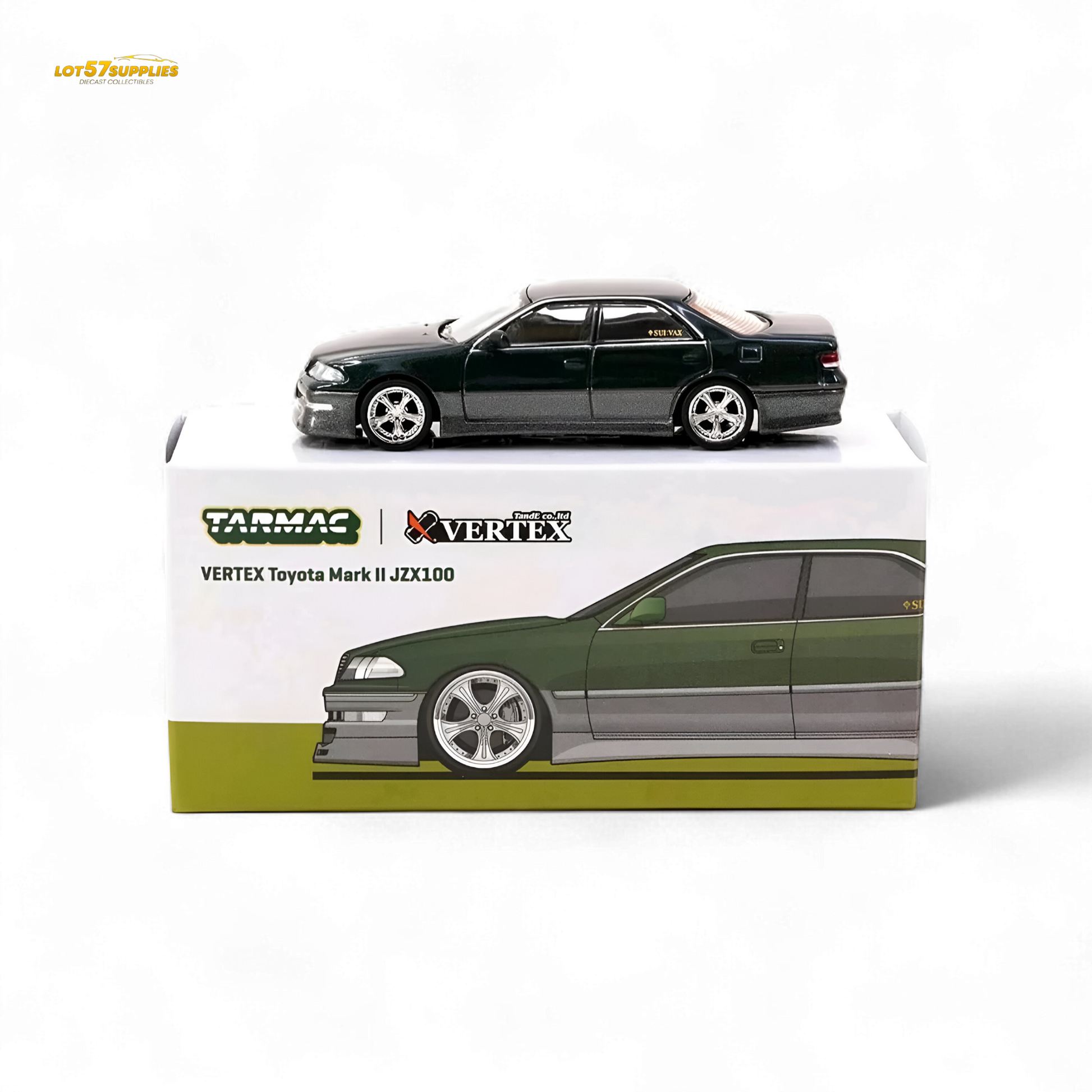 Tarmac Works Global64 VERTEX Toyota Mark II JZX100 Dark Green Metallic 1:64 T64G-024-GR