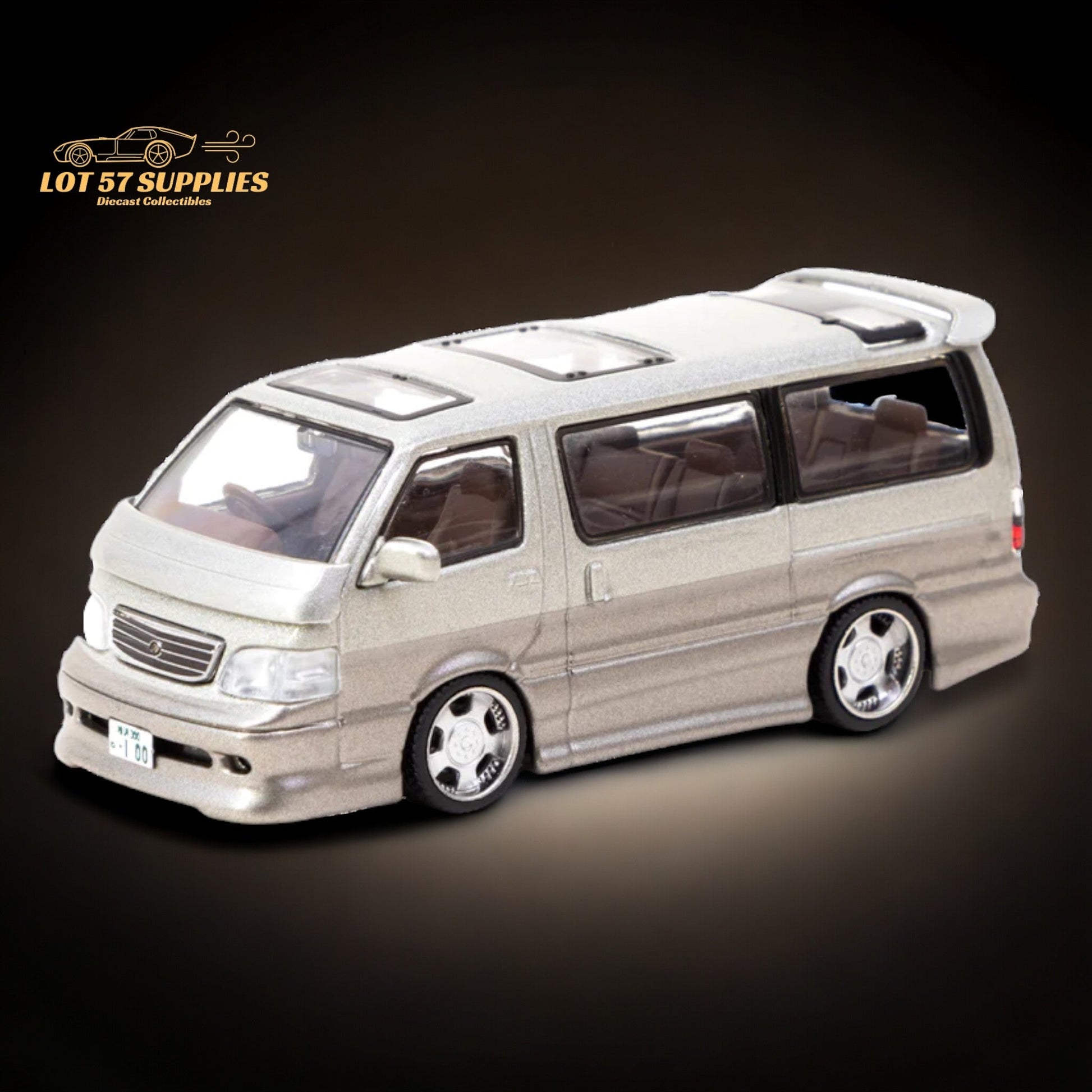 Tarmac Works Toyota Hiace Wagon Custom in Silver/Brown 1:64
