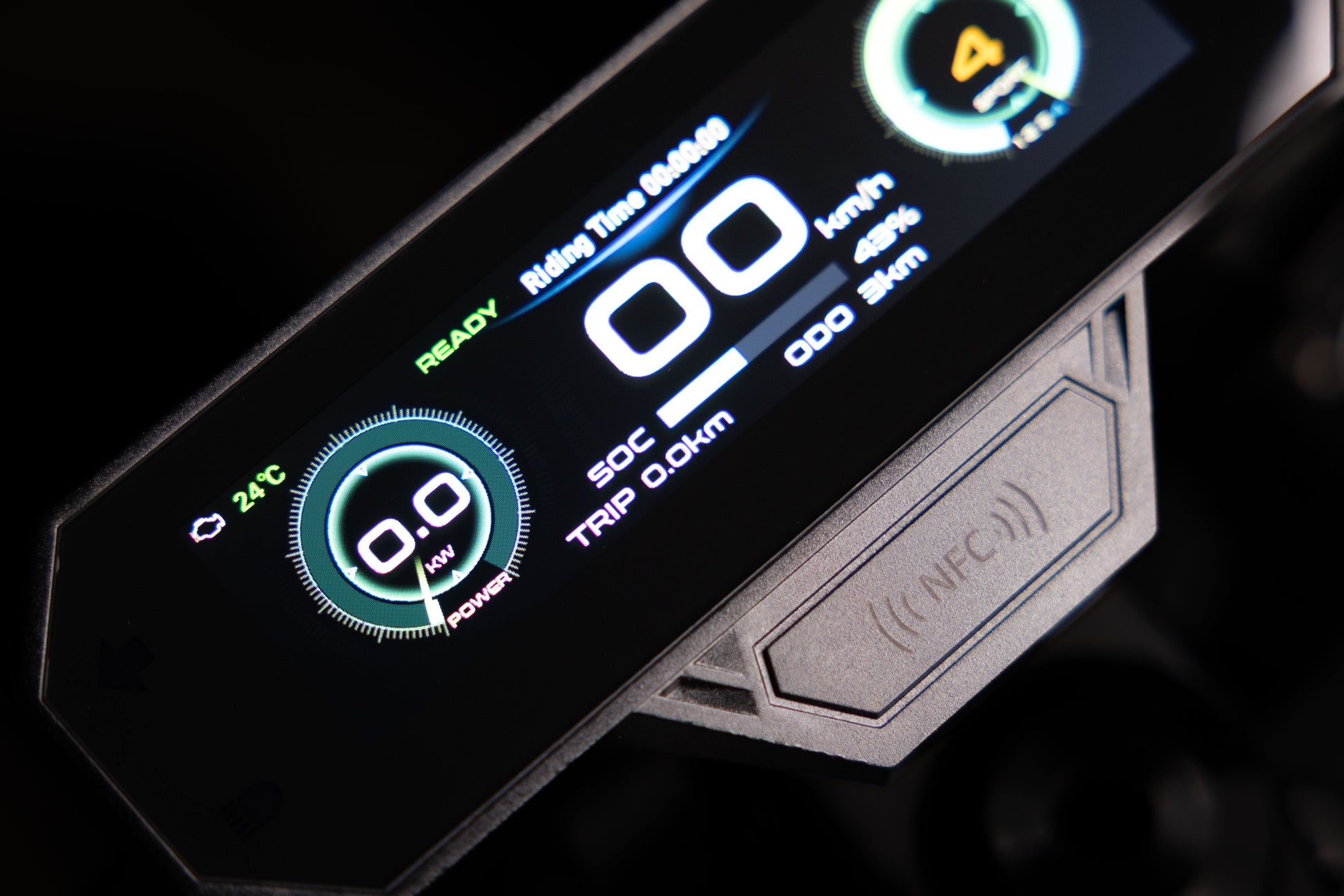 - TFT display with NFC card or password unlock — ride keyless or protect it with your personal PIN