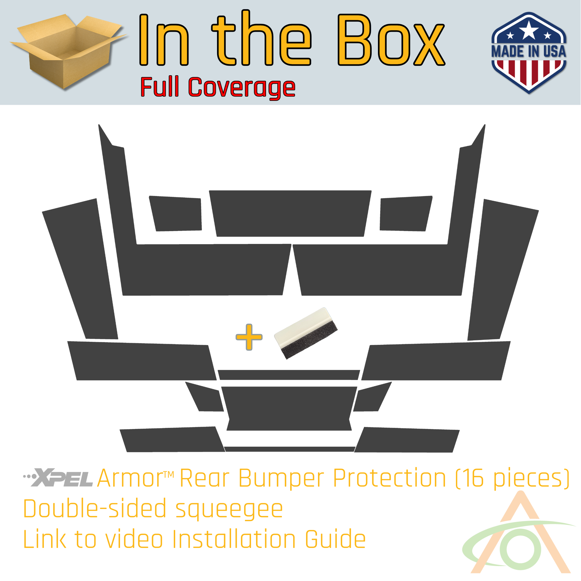 - (NEW) Extreme Kit: All of the above, plus sections that cover the underside of the bumper, and the upright section behind the license plate extending past the red reflectors.